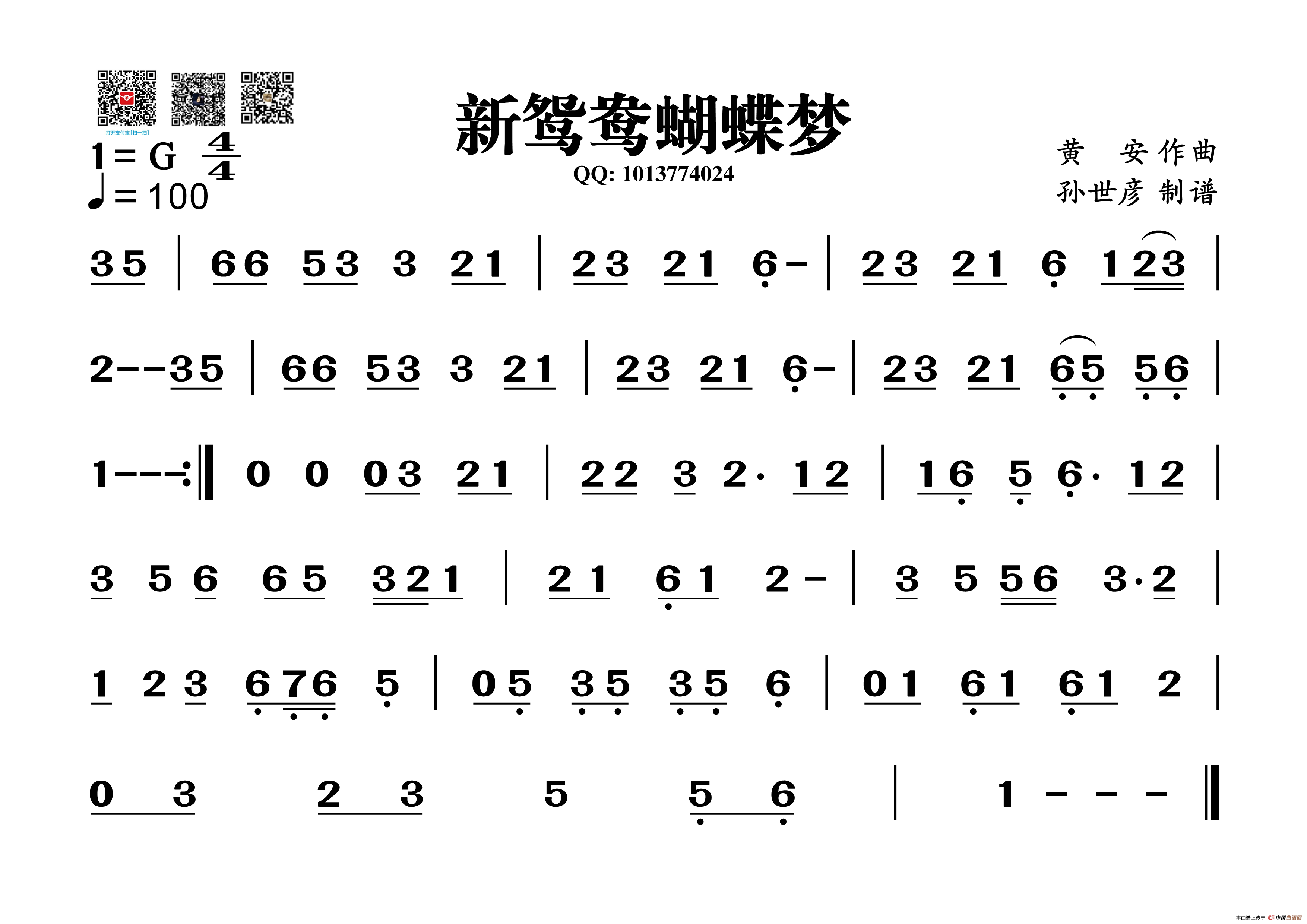 新鸳鸯蝴蝶梦(葫芦丝旋律谱)