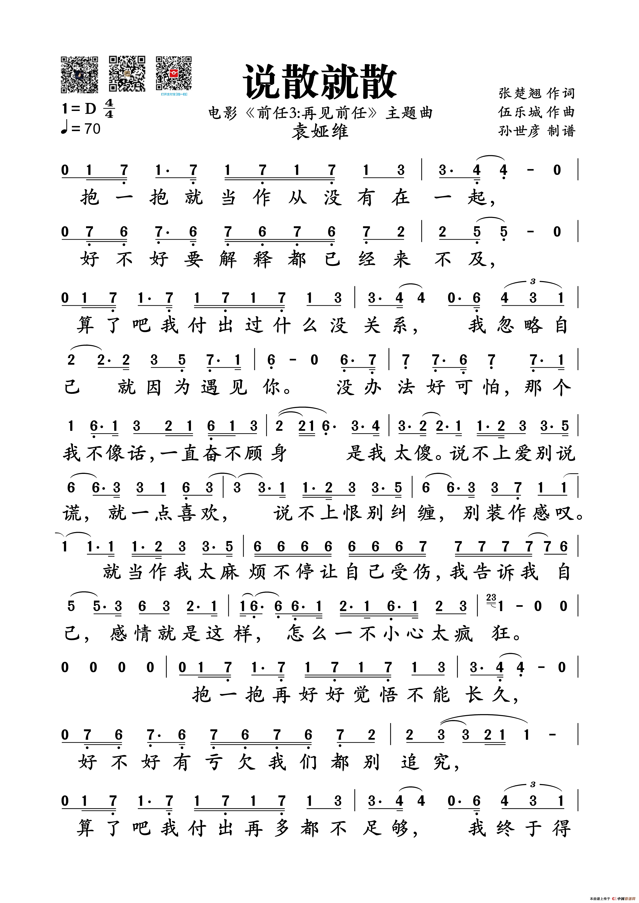 张楚翘作词 伍乐城作曲 孙世彦制谱 袁娅维演唱