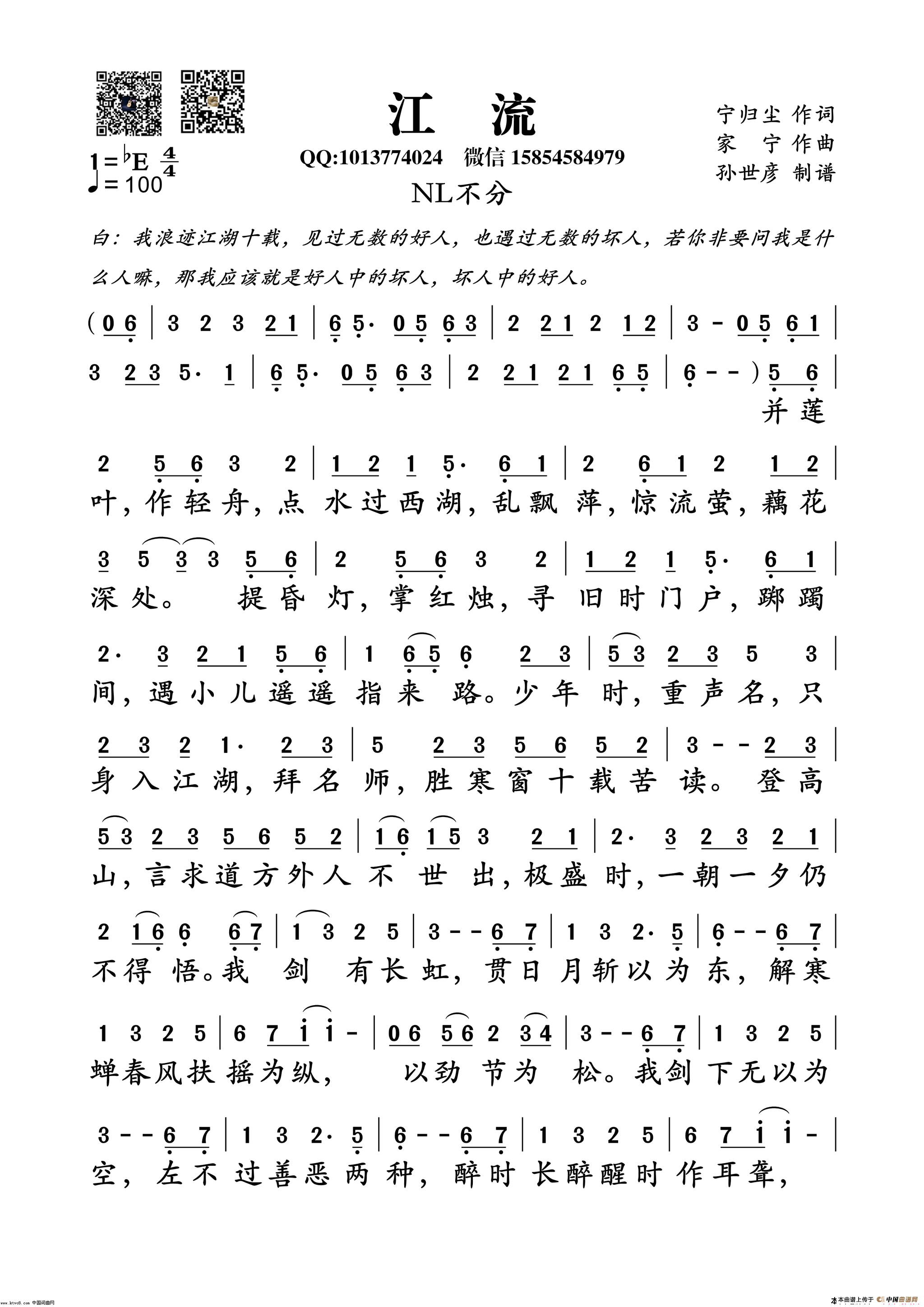 关于《江流》曲谱的评论