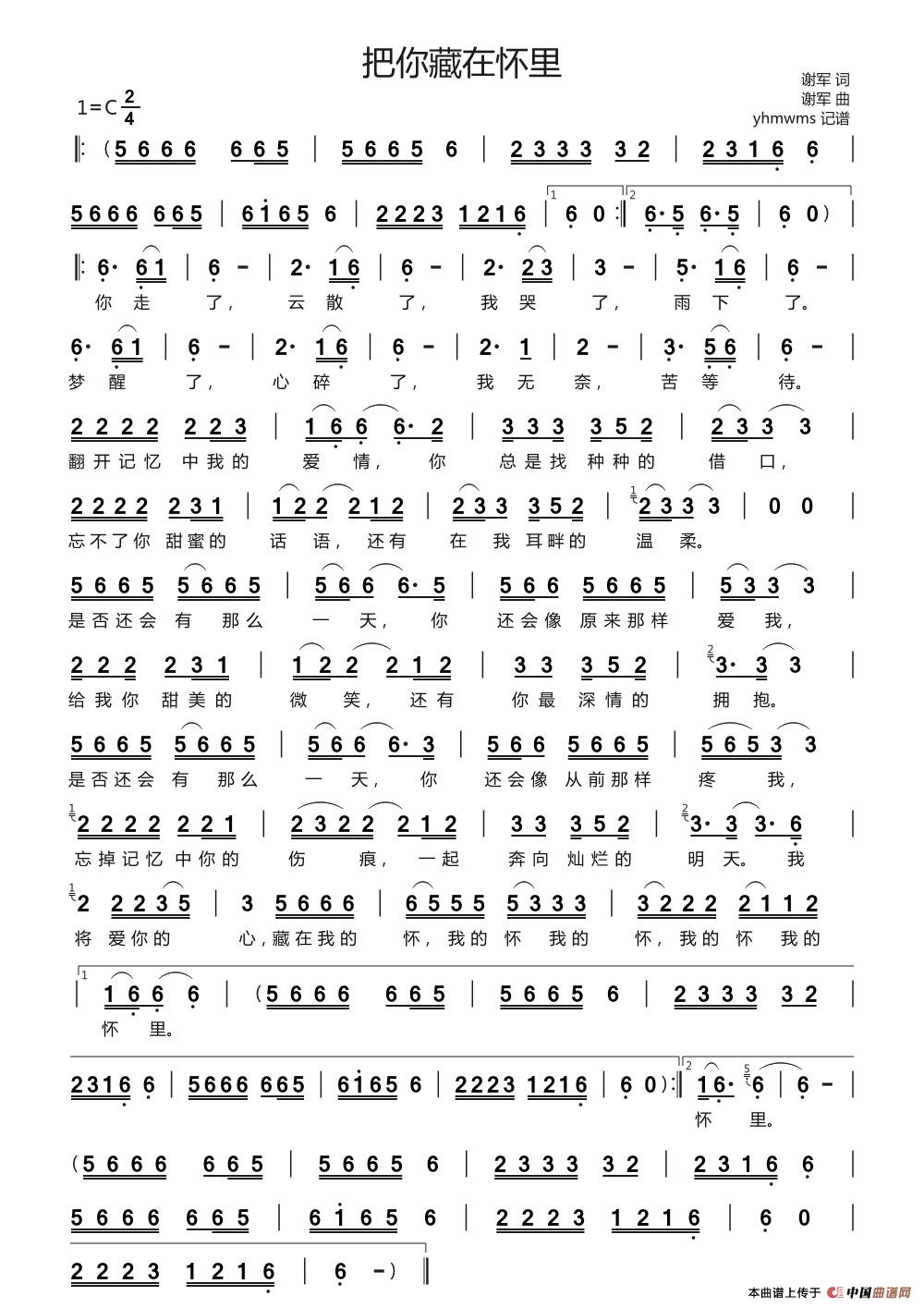 提示:在曲谱图片上单击右键,选择“图片另存为...”即可将曲谱保存到您的电脑中,打印时候可将图片插入到WORD中,调整合适大小打印即可。
