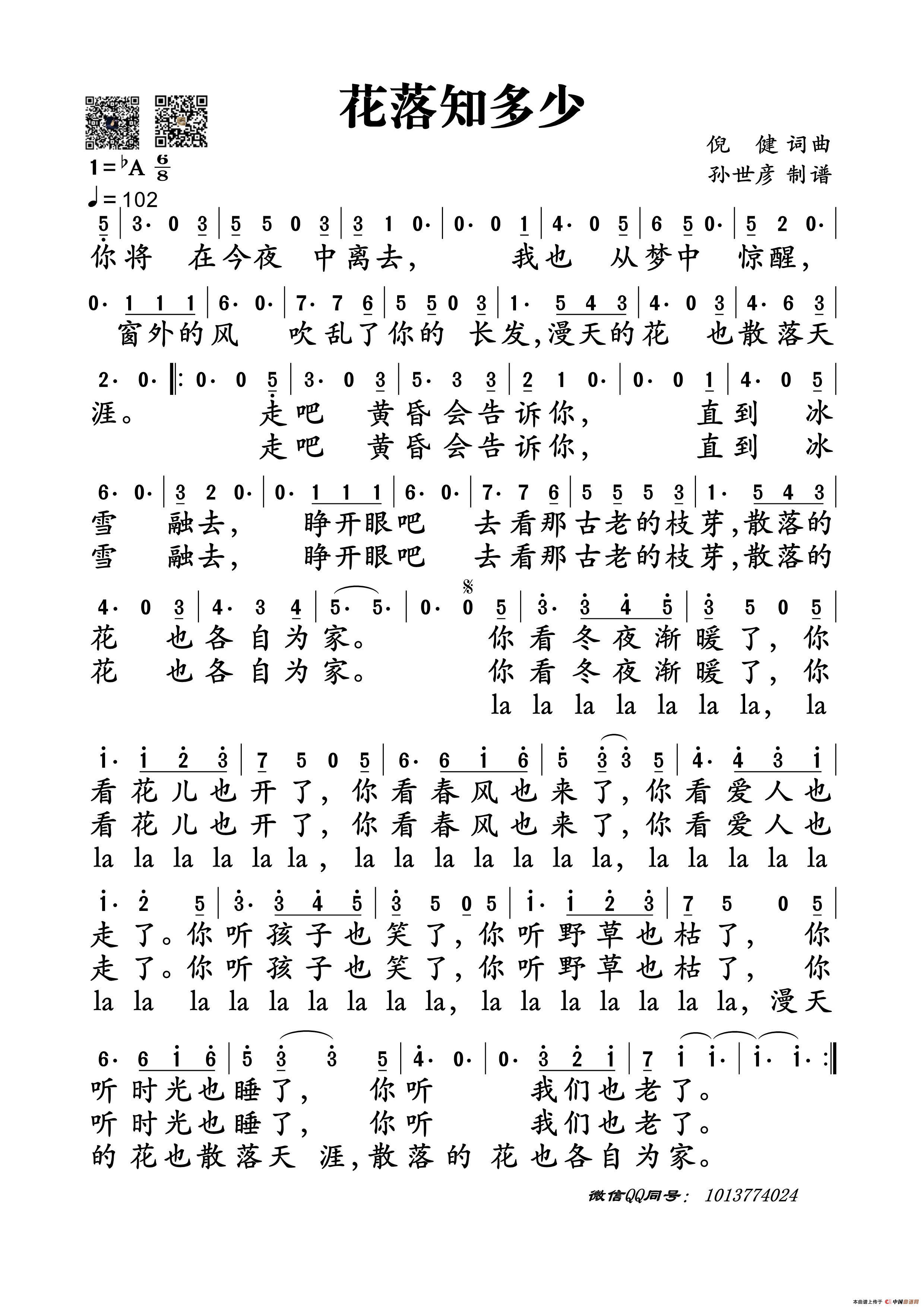 关于《花落知多少》曲谱的评论