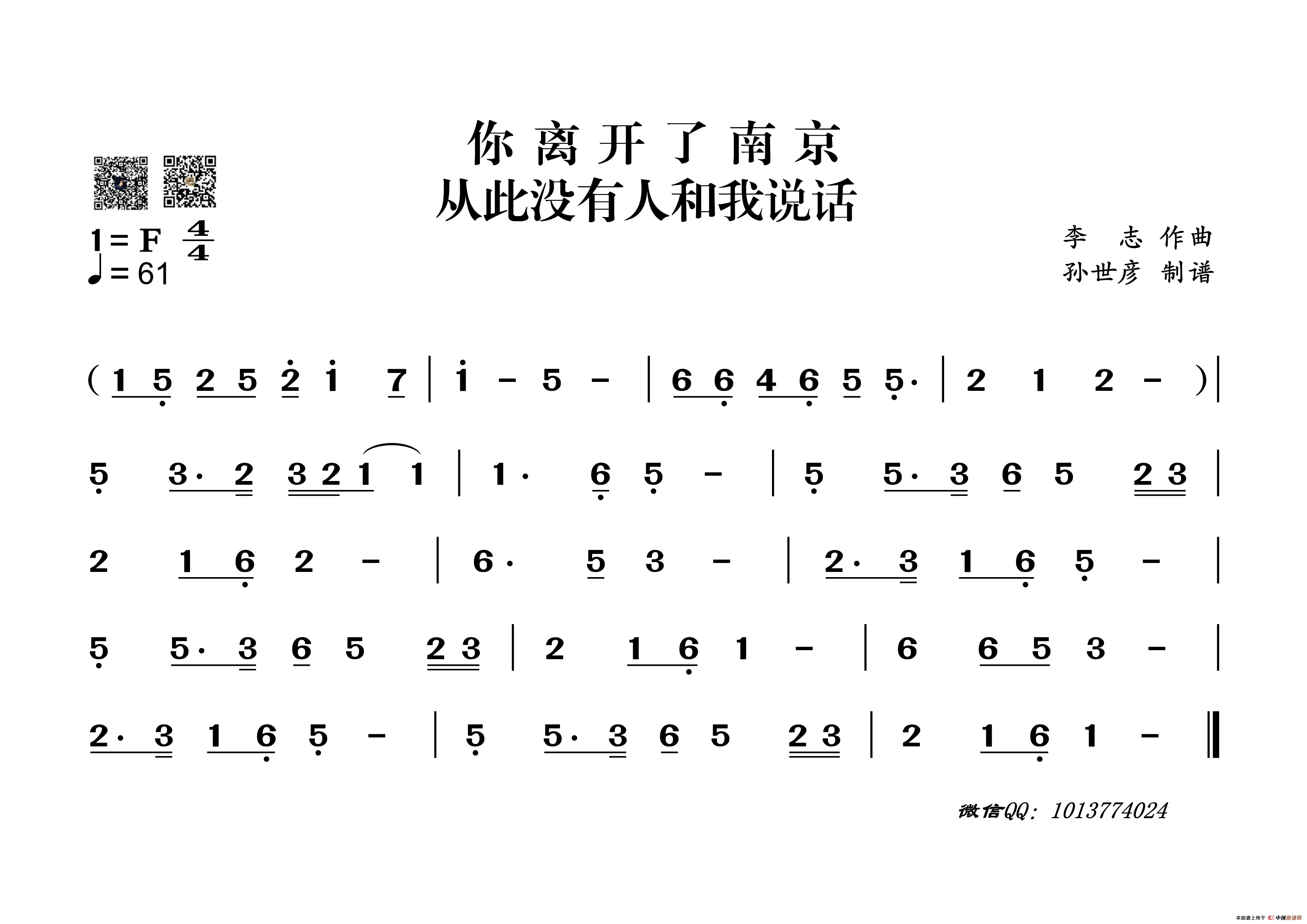 关于《你离开了南京从此没有人和我说话》曲谱的评论
