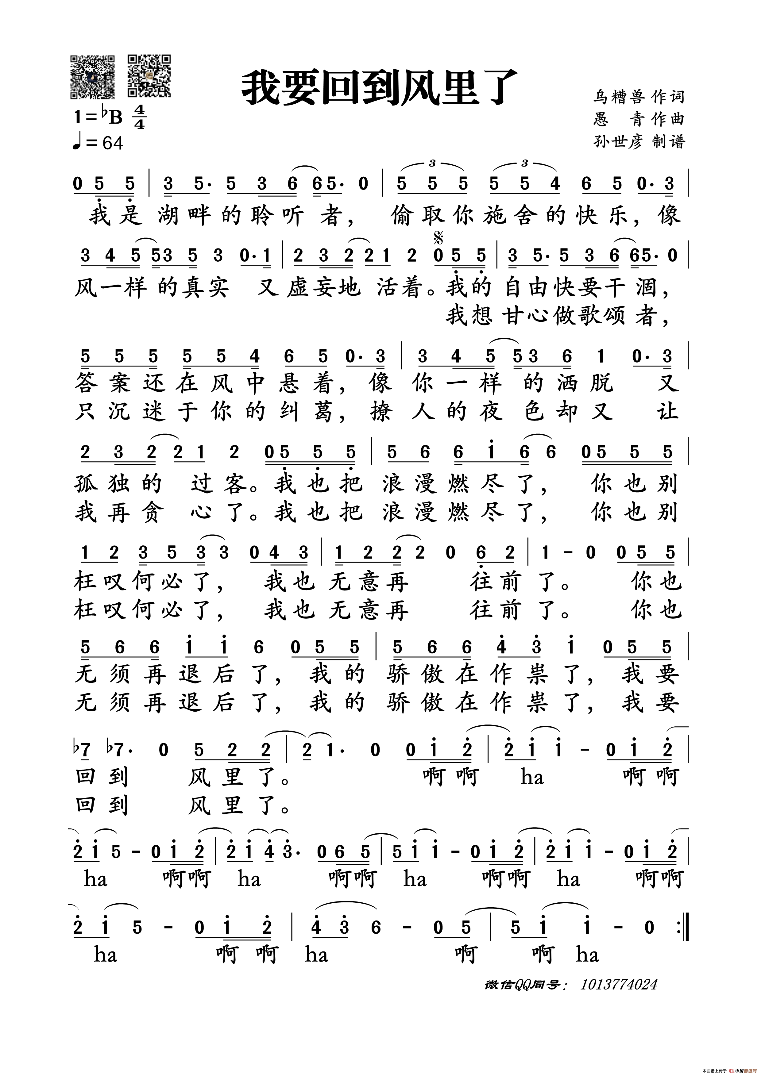 作词:乌糟兽 作曲:愚青 来源:孙世彦制谱 上传:默子