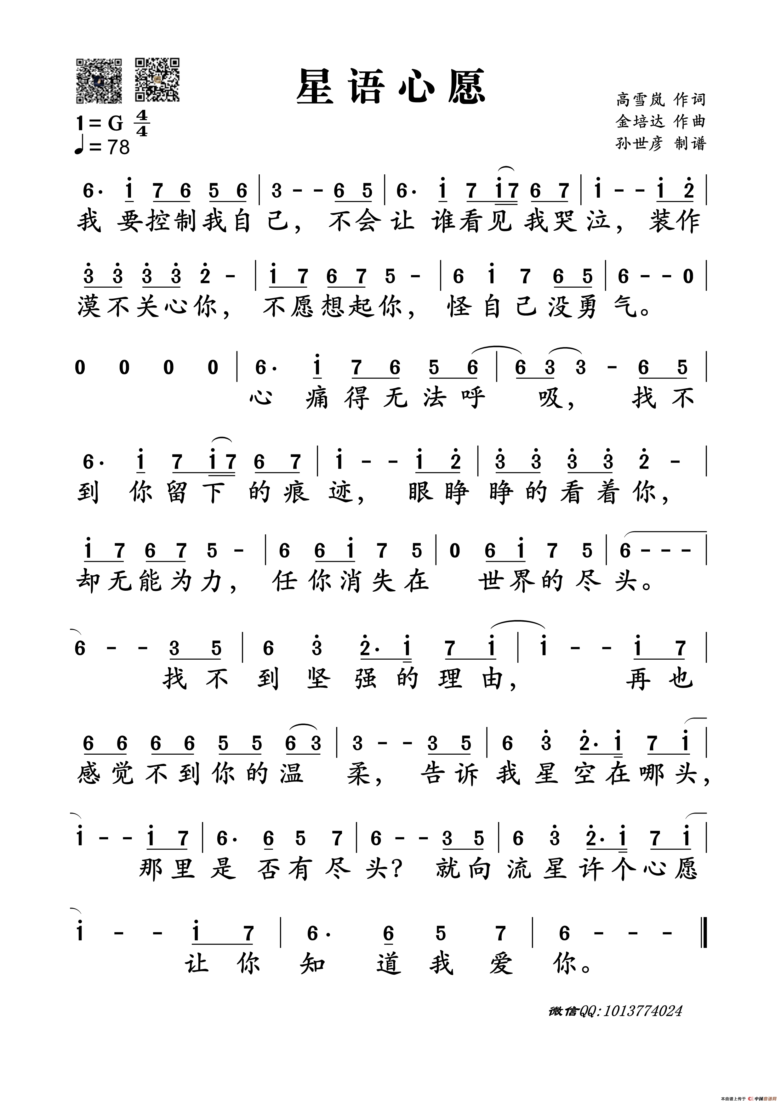 当前位置: 首页 谱友园地 谱友记谱 星语心愿