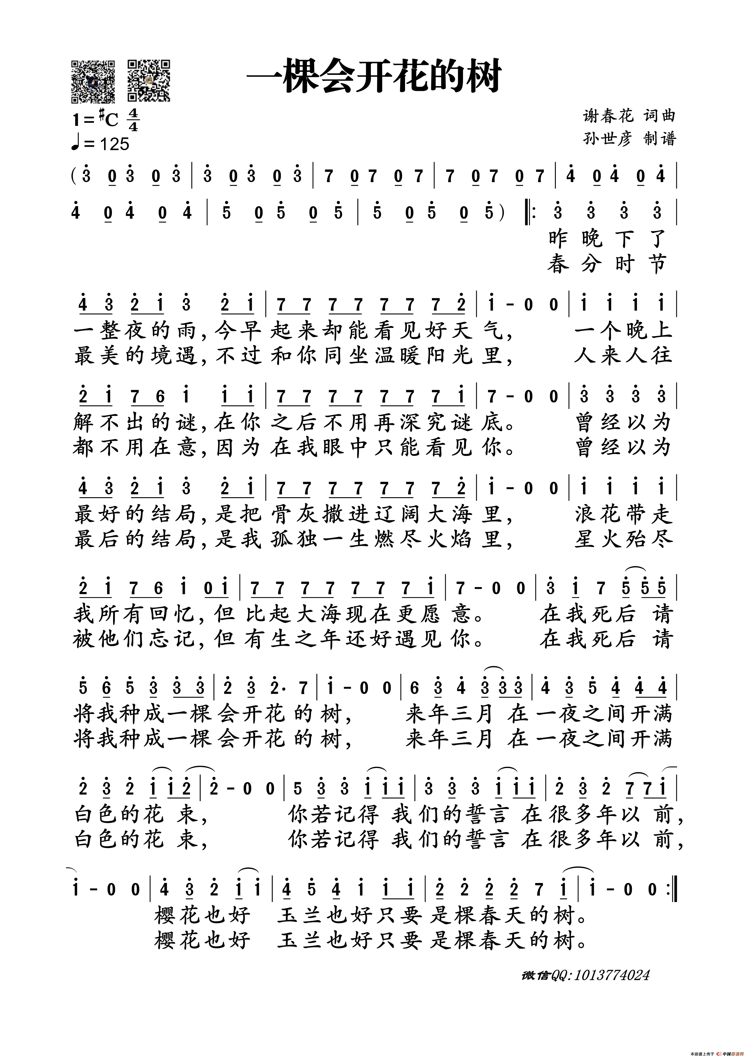提示:在曲谱图片上单击右键,选择“图片另存为...”即可将曲谱保存到您的电脑中,打印时候可将图片插入到WORD中,调整合适大小打印即可。