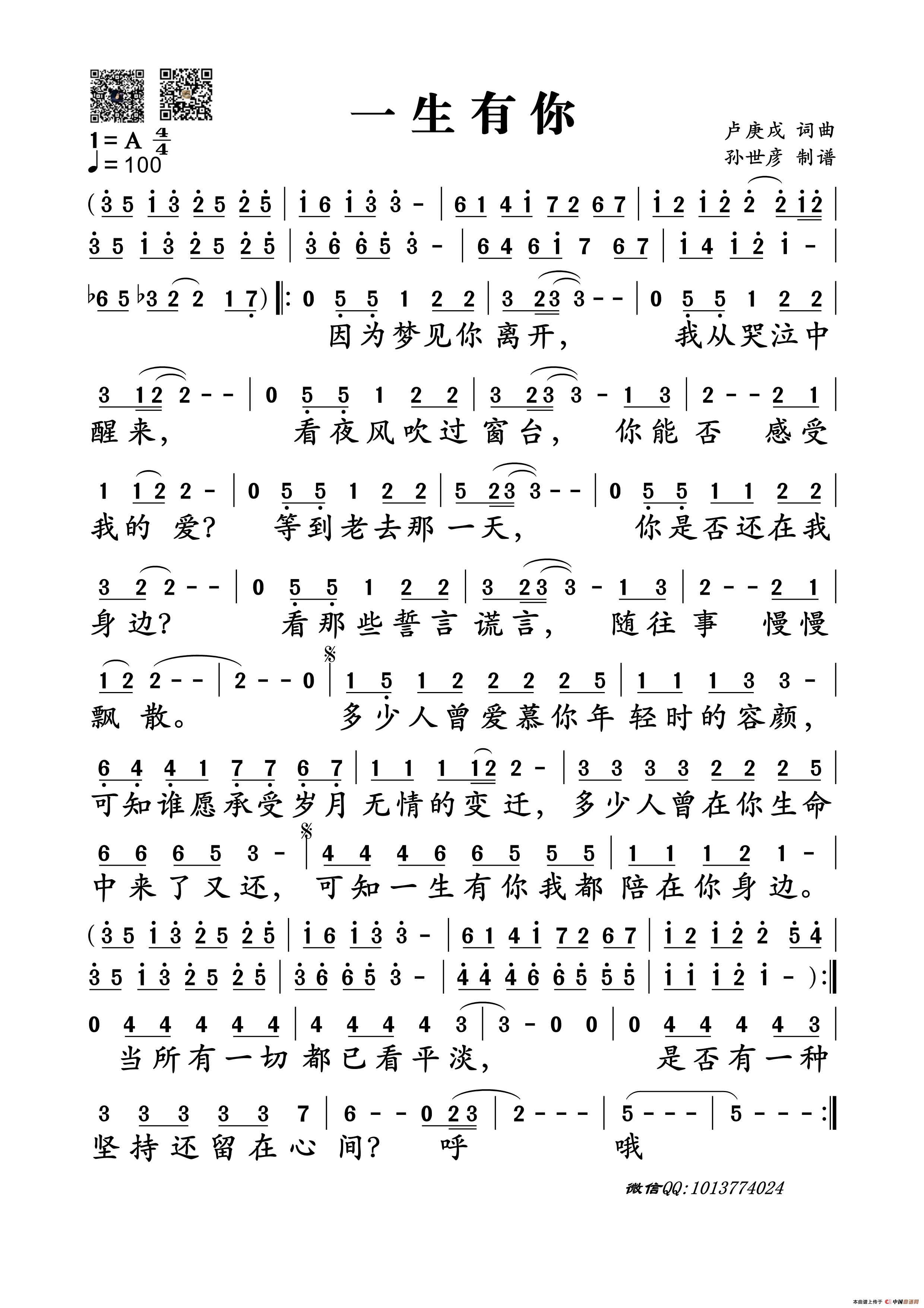 当前位置: 首页 谱友园地 谱友记谱 一生有你