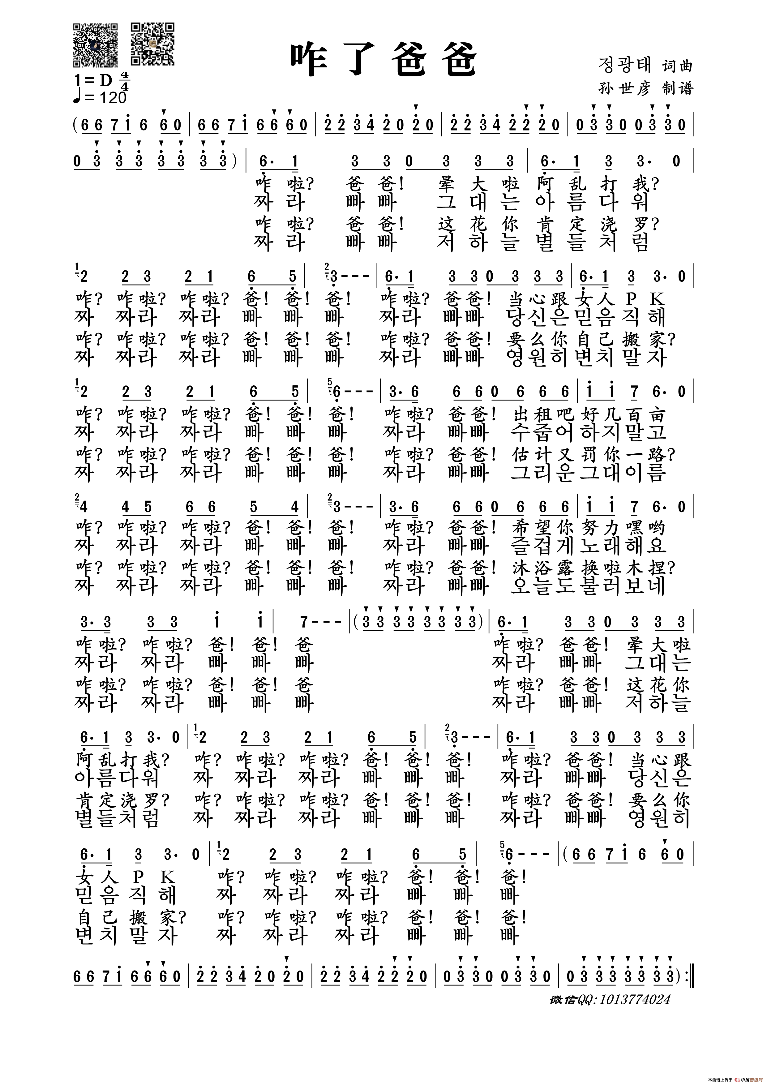 作词:정광태 作曲:정광태 来源:孙世彦制谱 上传:默子