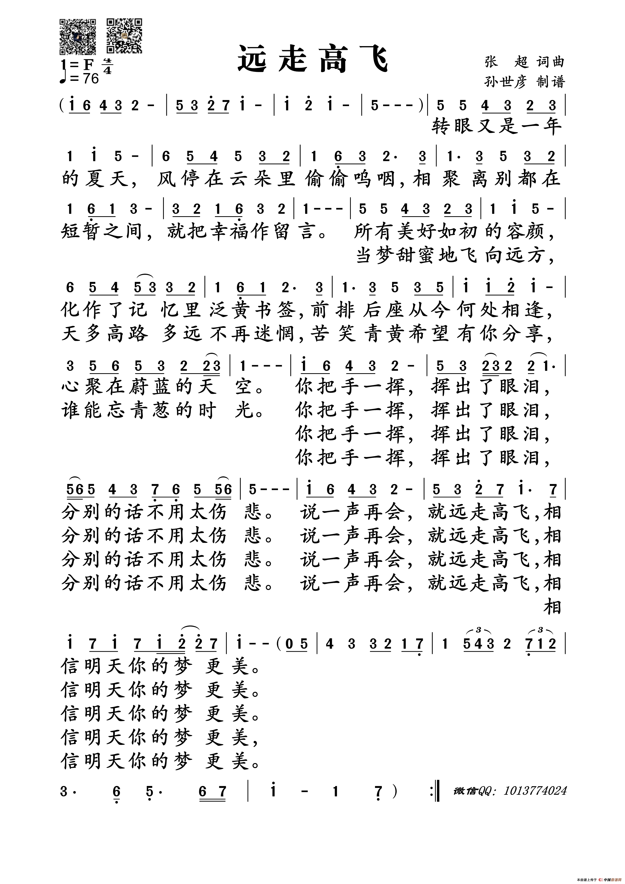 当前位置: 首页 谱友园地 谱友记谱 远走高飞(张超词 张超曲)