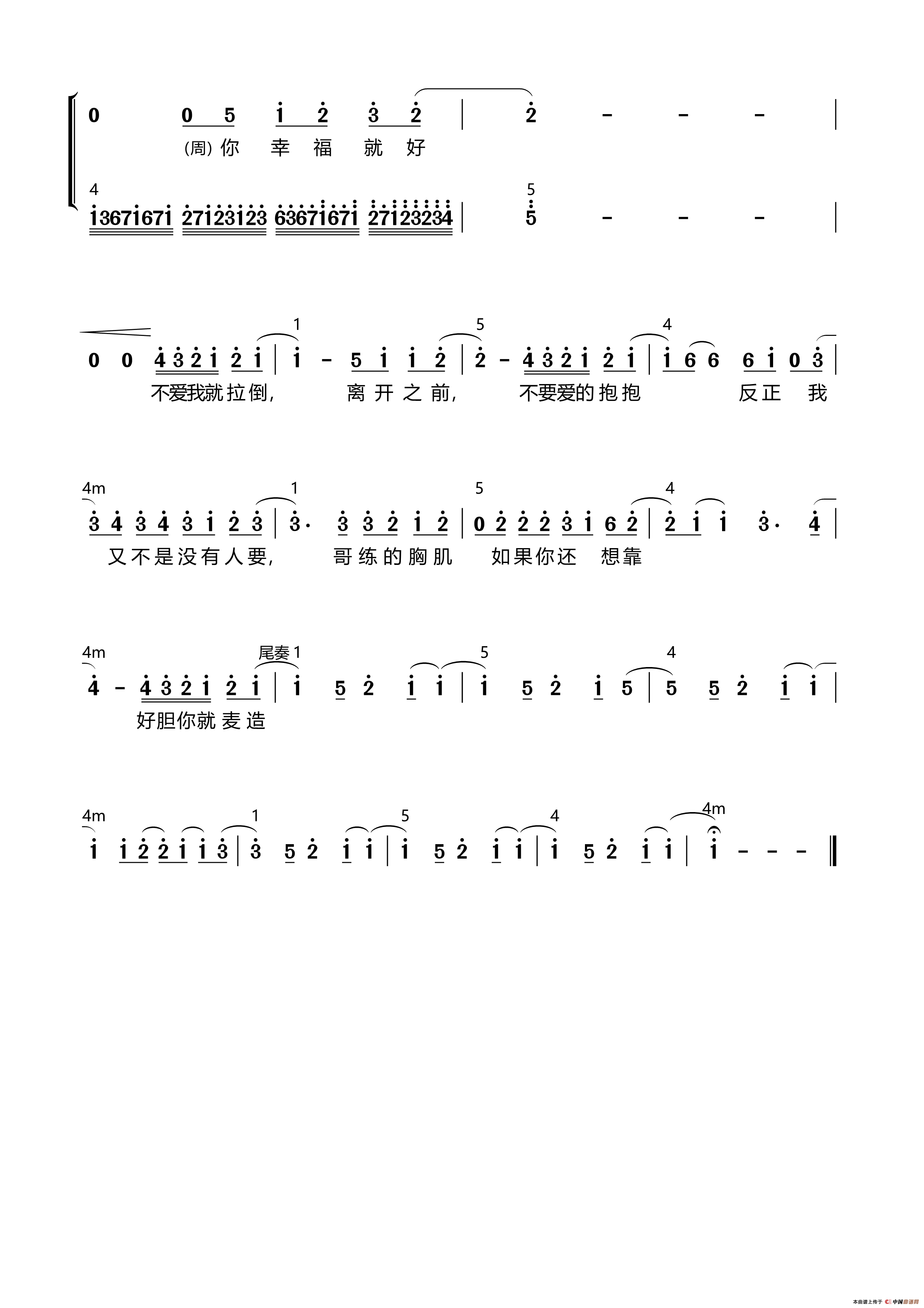 提示:在曲谱图片上单击右键,选择“图片另存为...”即可将曲谱保存到您的电脑中,打印时候可将图片插入到WORD中,调整合适大小打印即可。