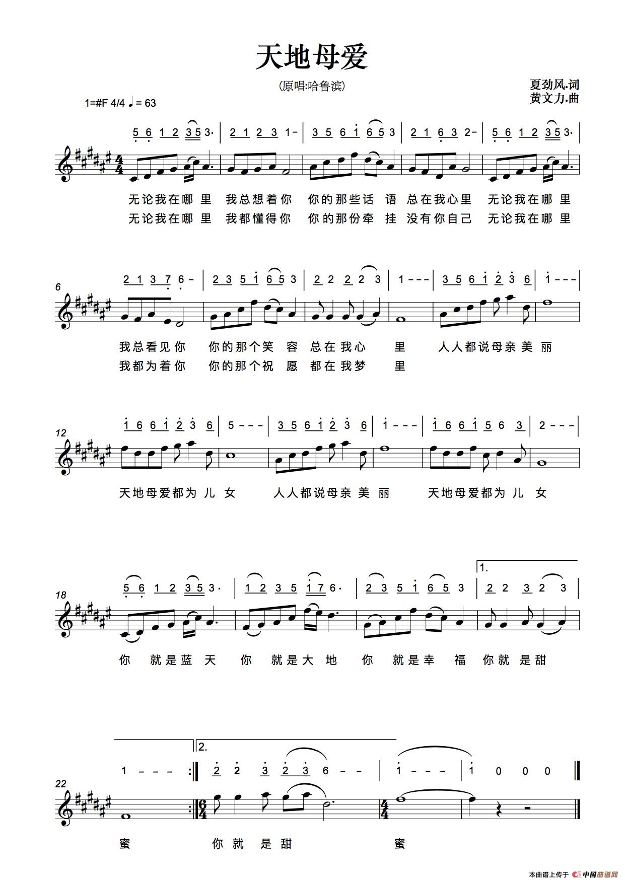 关于《天地母爱》曲谱的评论