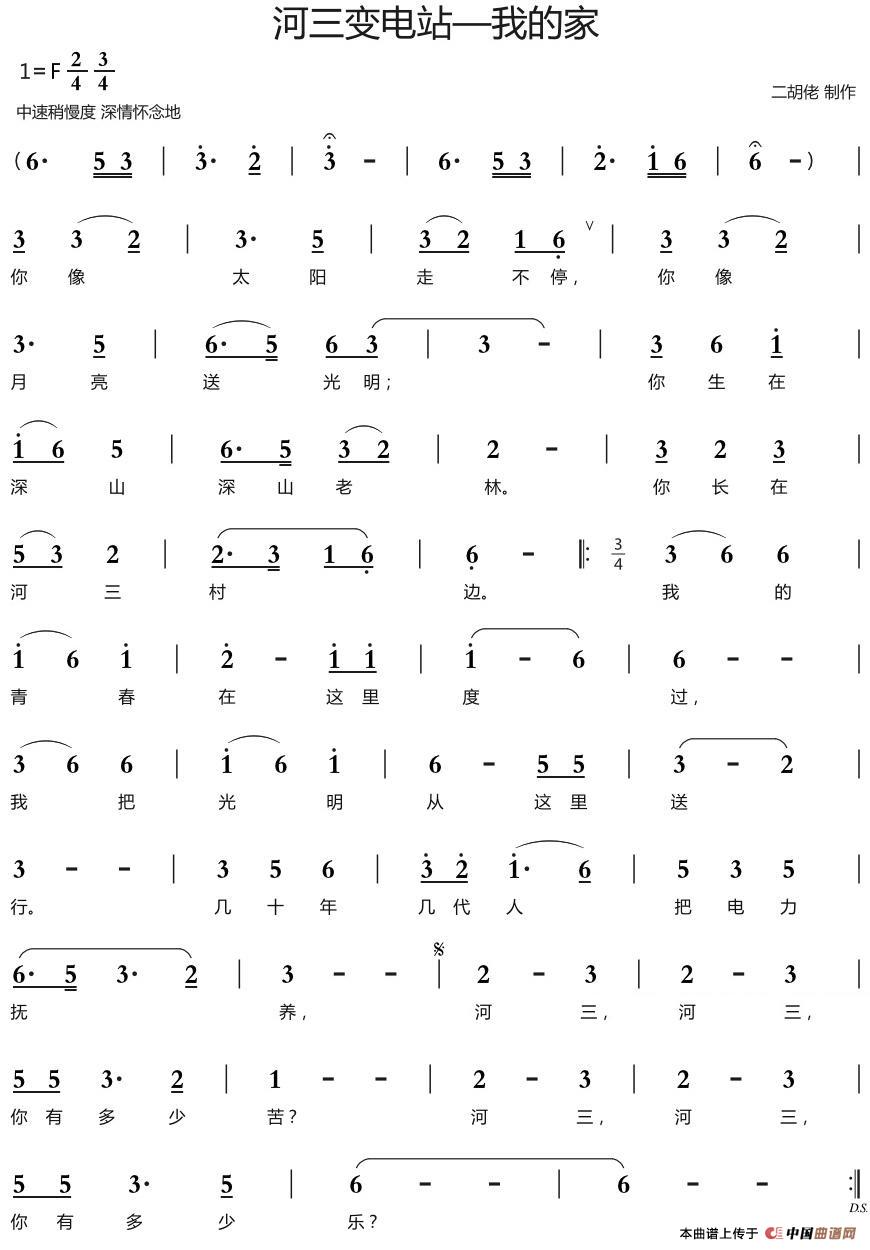 关于《河三变电站—我的家》曲谱的评论