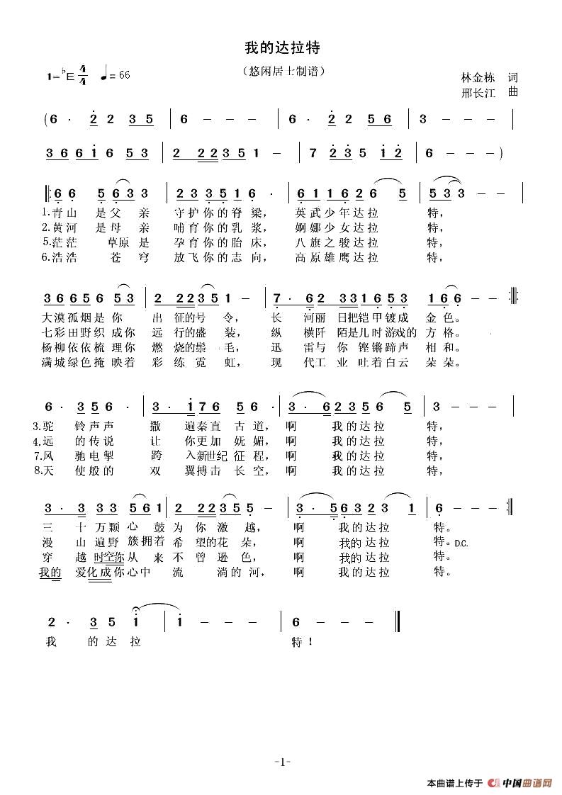 关于《我的达拉特》曲谱的评论