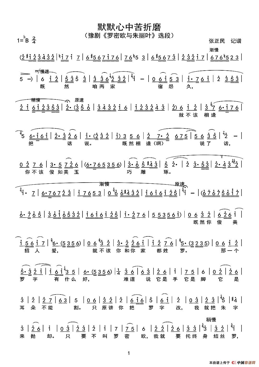 默默心中苦折磨(豫剧《罗蜜欧与朱丽叶》选段)