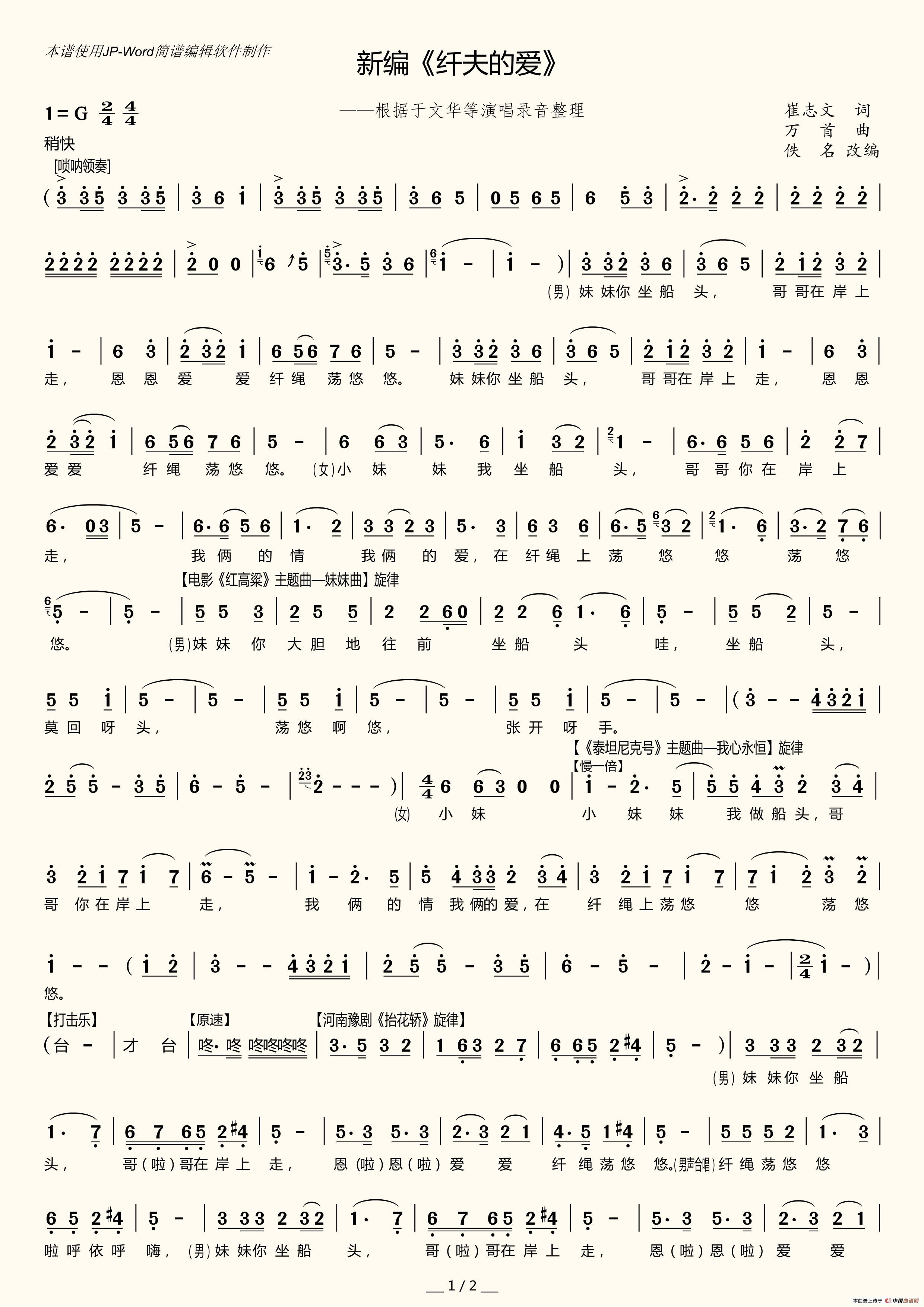 关于《新编《纤夫的爱》》曲谱的评论