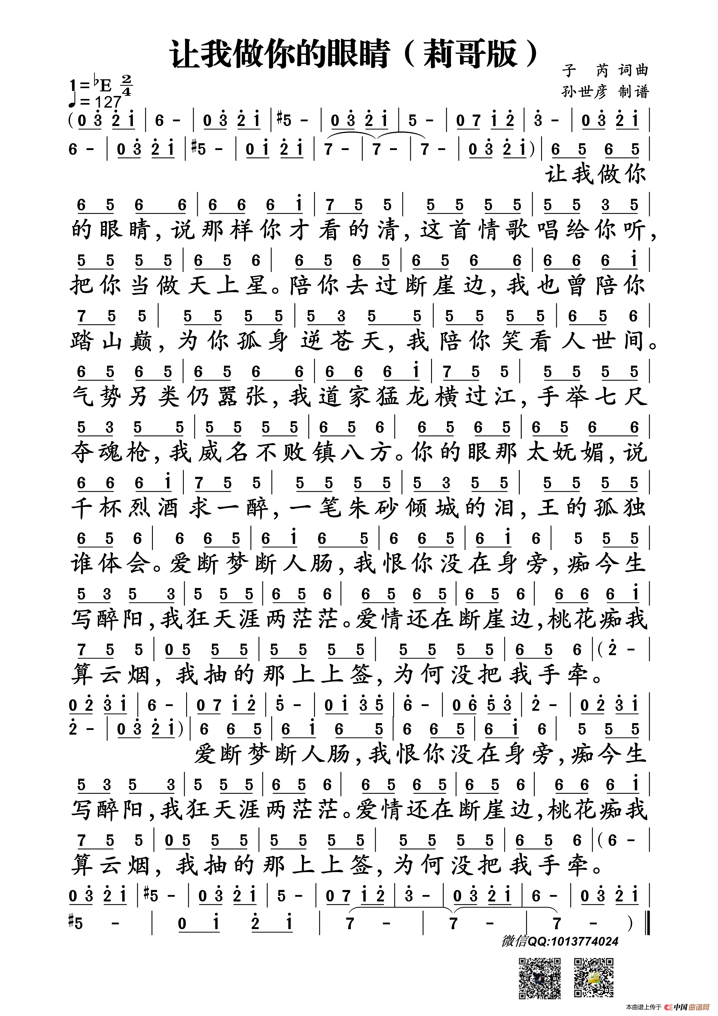 关于《让我做你的眼睛》曲谱的评论