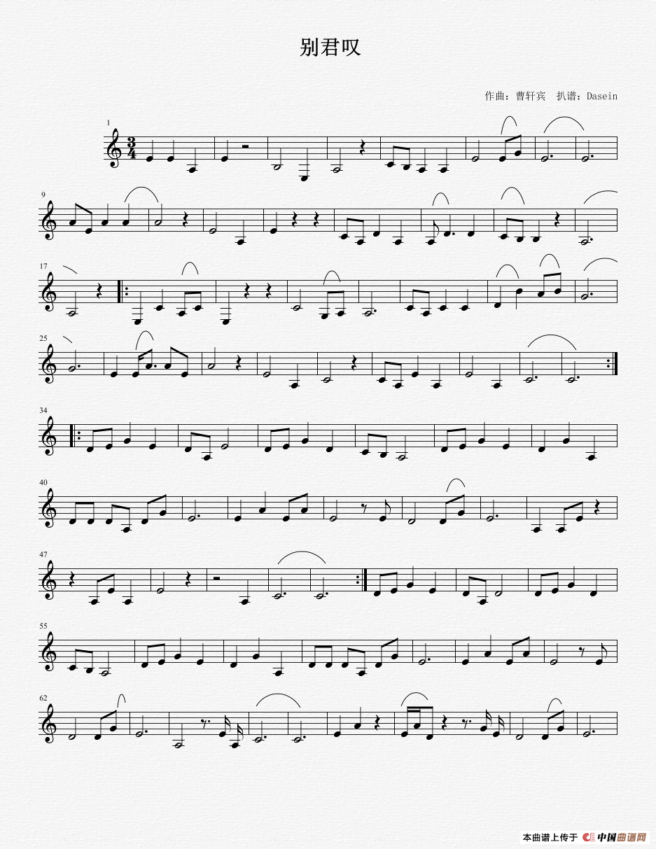 关于《别君叹》曲谱的评论