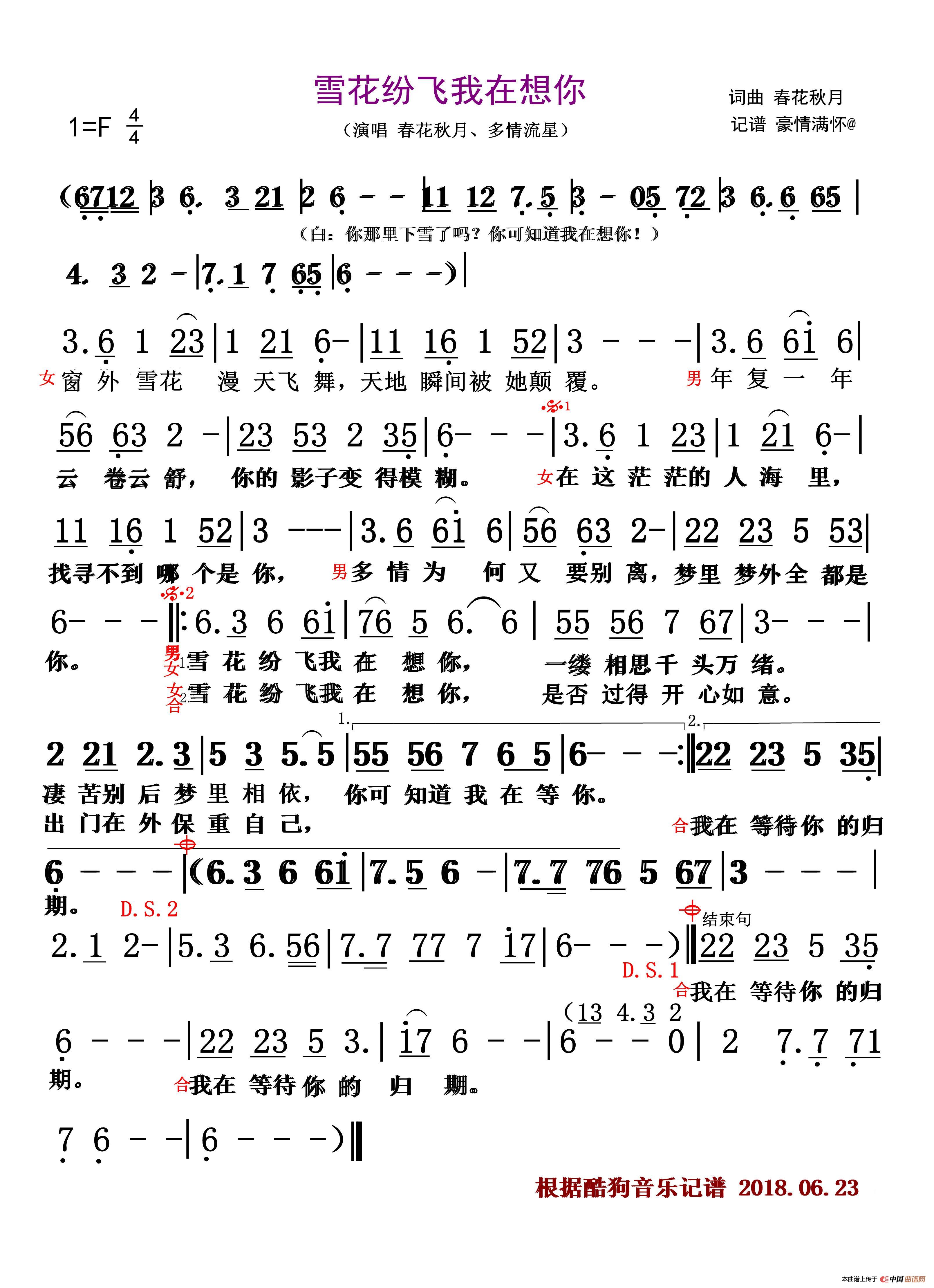 作词:春花秋月   作曲:春花秋月   演唱(奏):春花秋月 多情流星   来源:根据酷狗音乐记谱   上传:豪情满怀@   日期:2018-06-23   浏览次数: