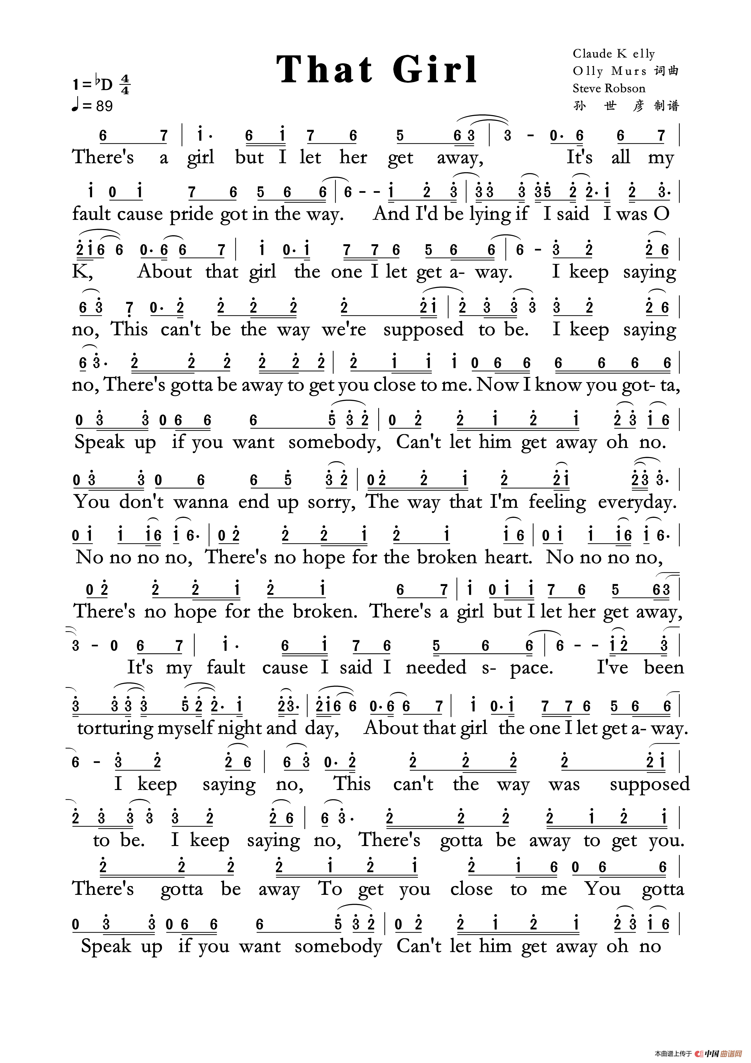 《That Girl》是由Olly Murs(奥利·莫尔斯)演唱