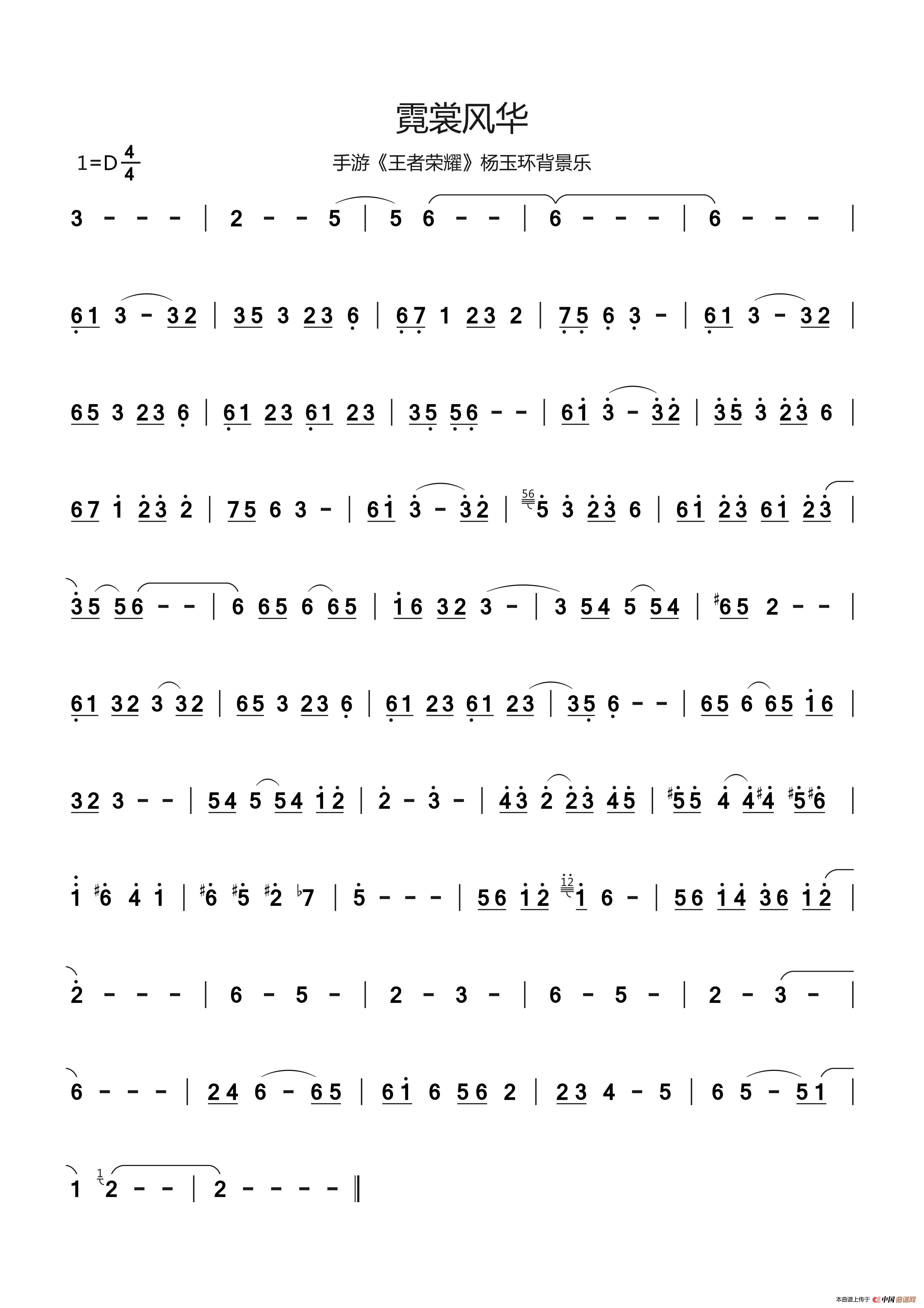霓裳风华(王者荣耀杨玉环登入背景乐主旋律简谱)