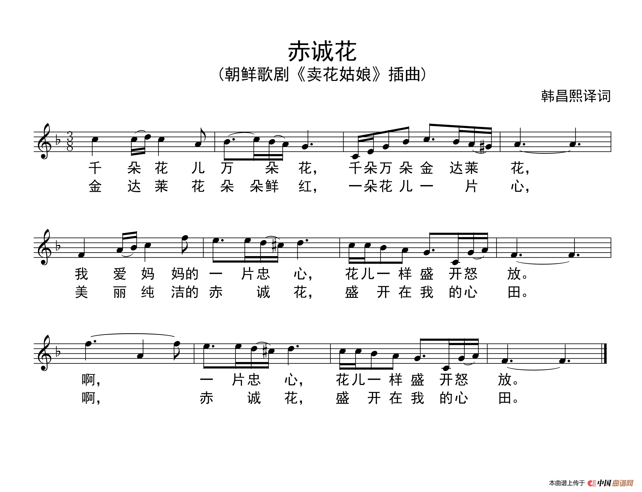 赤诚花(朝鲜歌剧《卖花姑娘》选曲、五线谱))