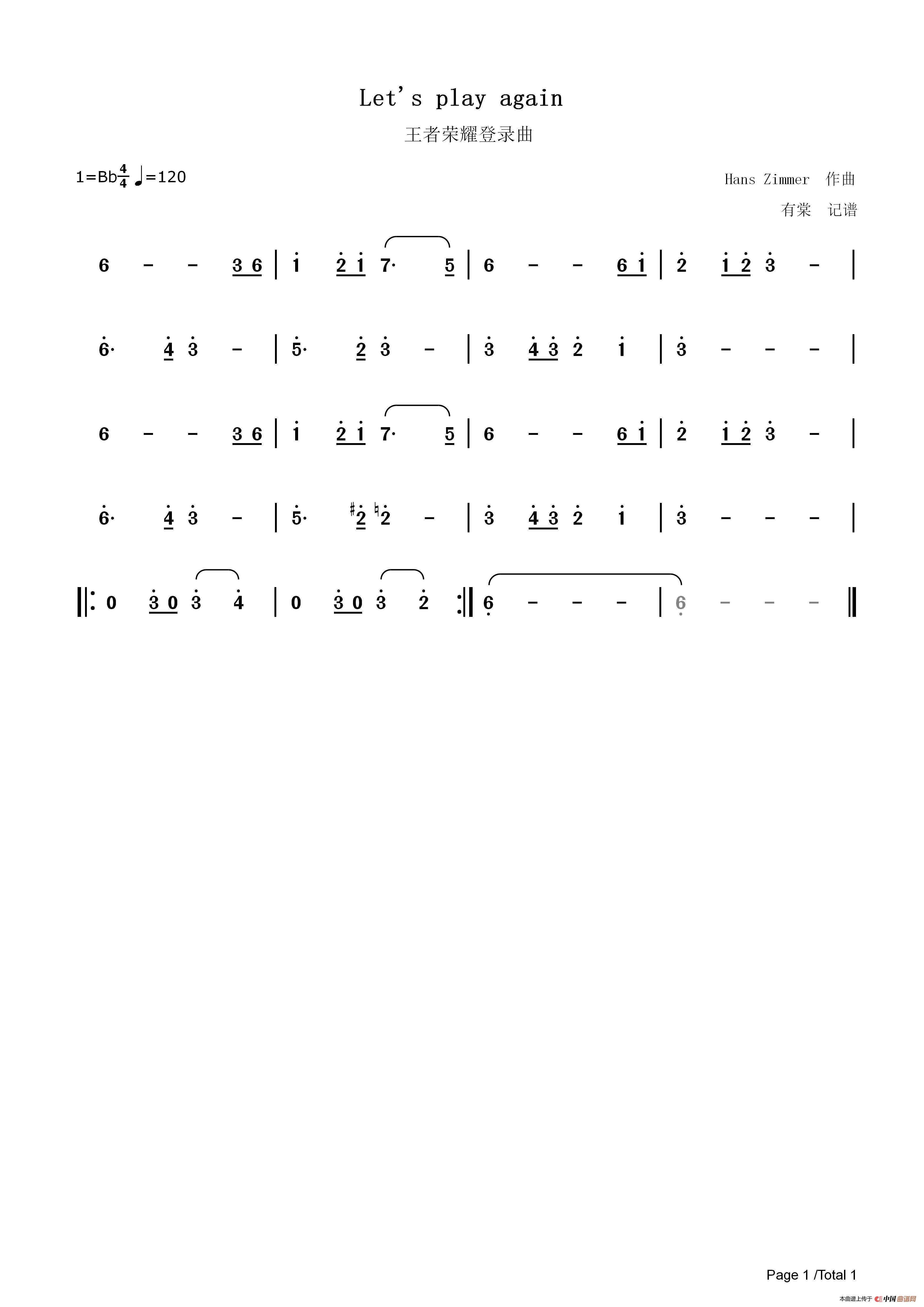 Let's Play Again(《王者荣耀》登录曲主旋律简谱)