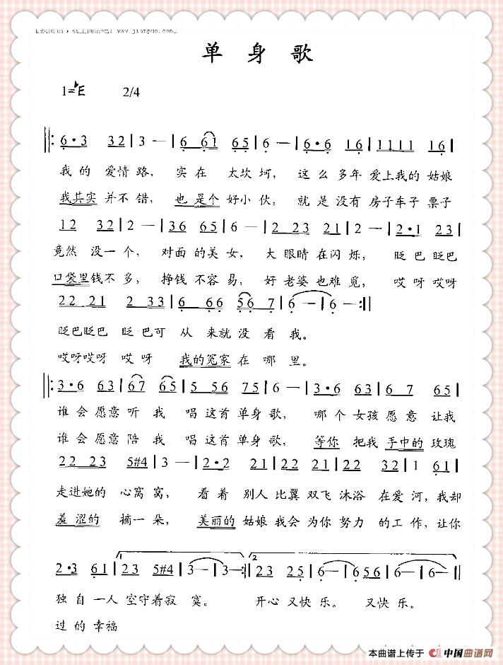 关于《单身歌》曲谱的评论