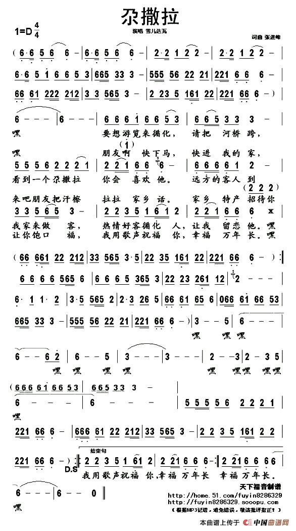 作词:张进峰 作曲:张进峰 演唱(奏):雪儿达瓦 来源:网络 上传:自由自在歌谱