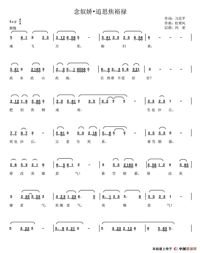 作词:习近平   作曲:杜寒风   来源:原创作品、冯亚记谱   上传:杜寒风   日期:2018-08-18   浏览次数: