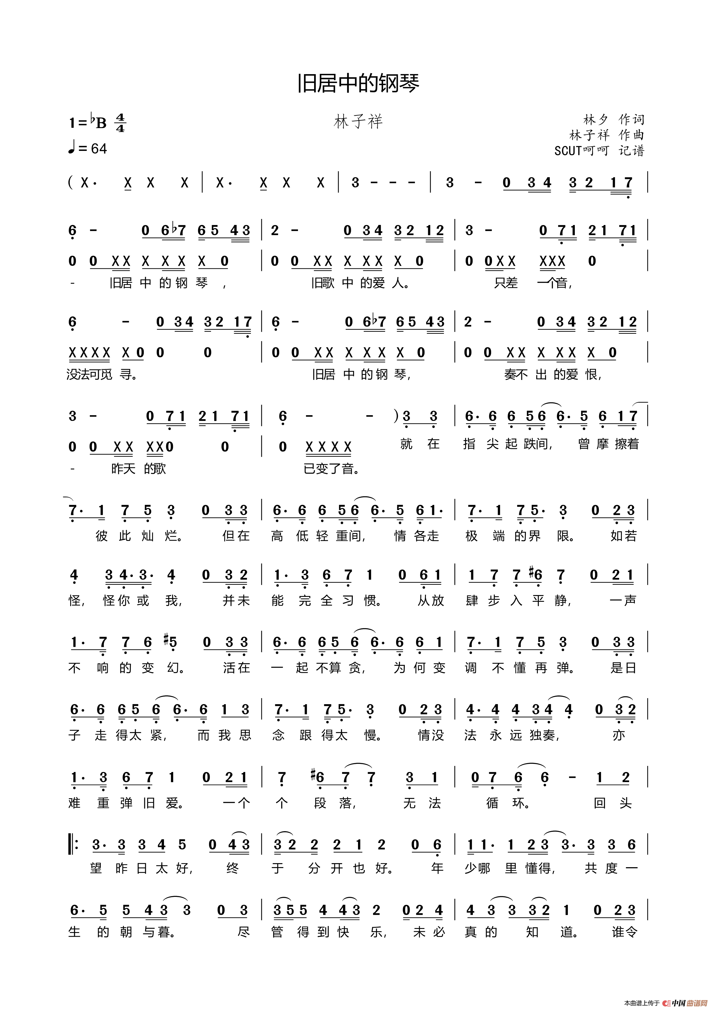《旧居中的钢琴》文本歌词