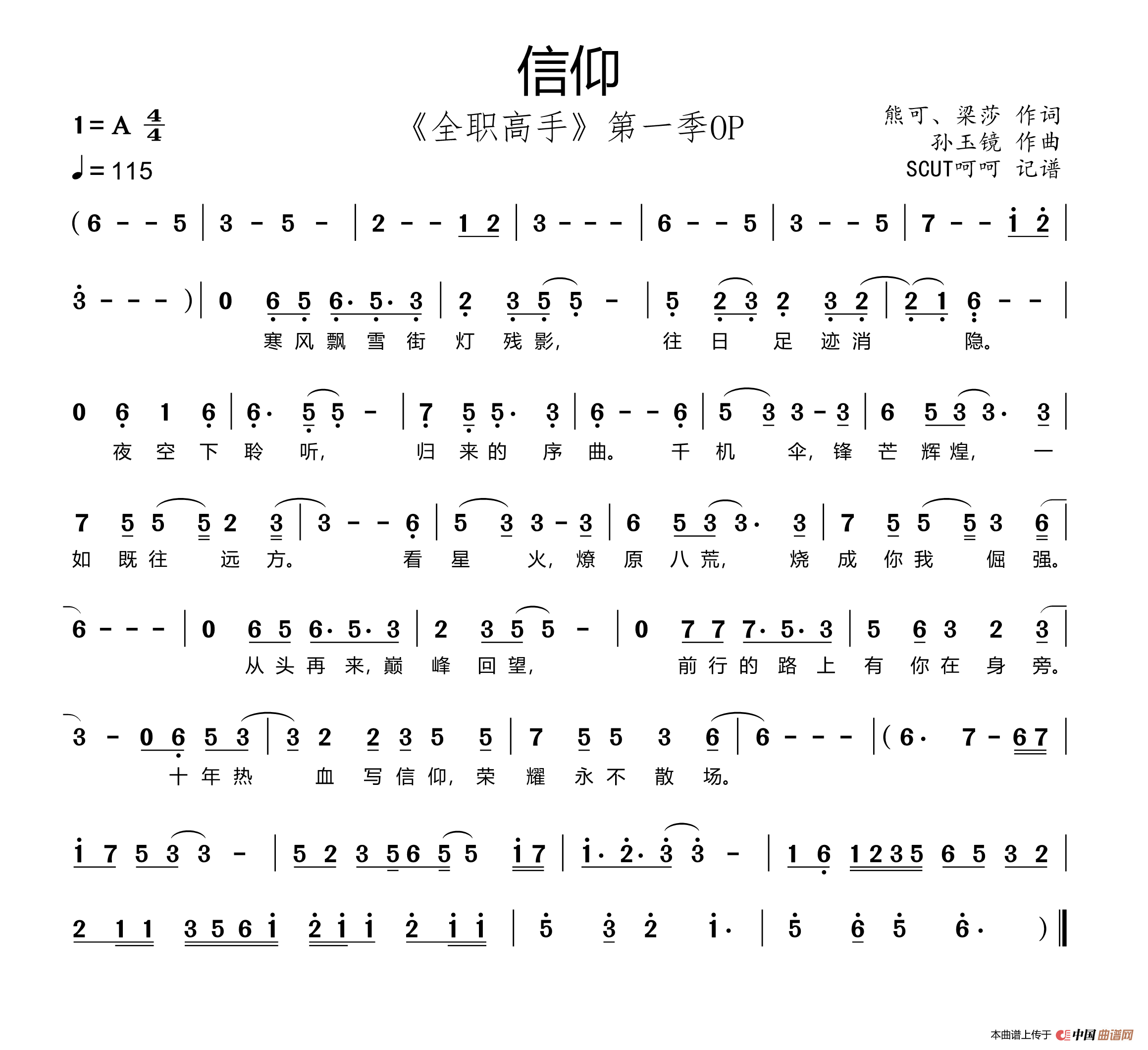 关于《信仰》曲谱的评论