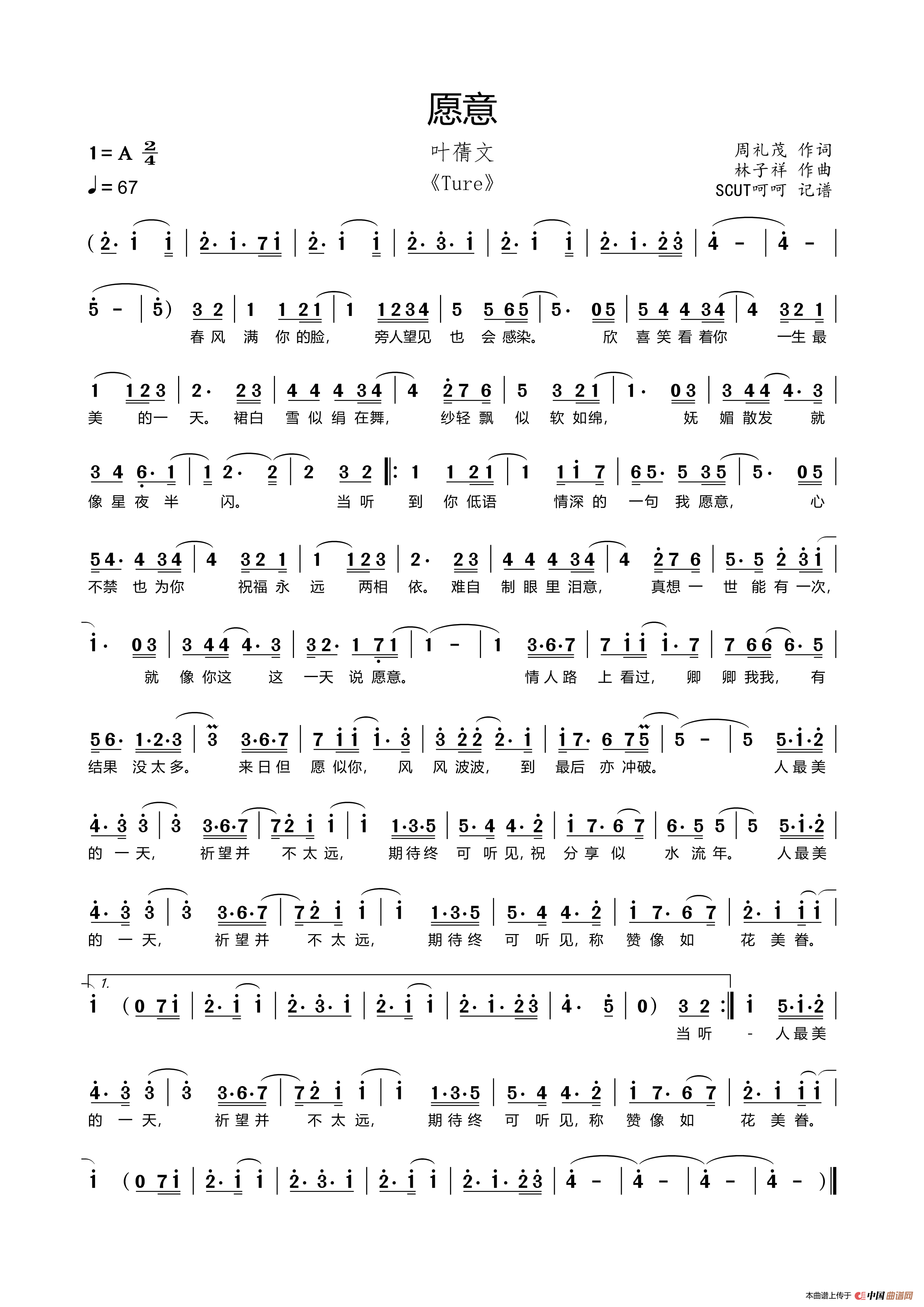 关于《愿意》曲谱的评论