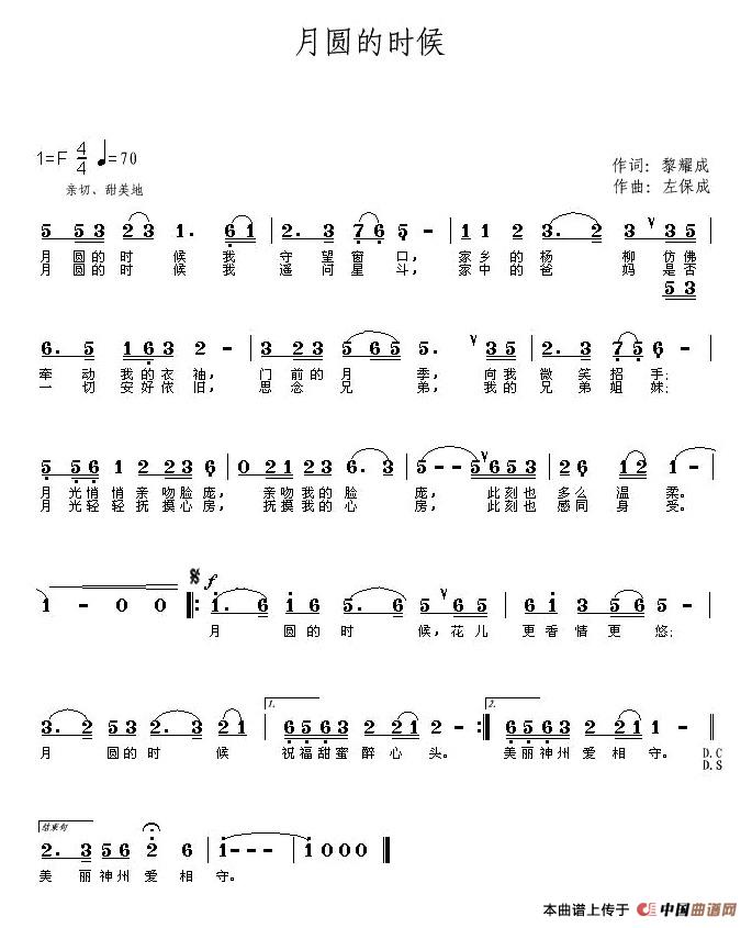 当前位置: 首页 谱友园地 谱友记谱 月圆的时候(黎耀成词 左保成曲)