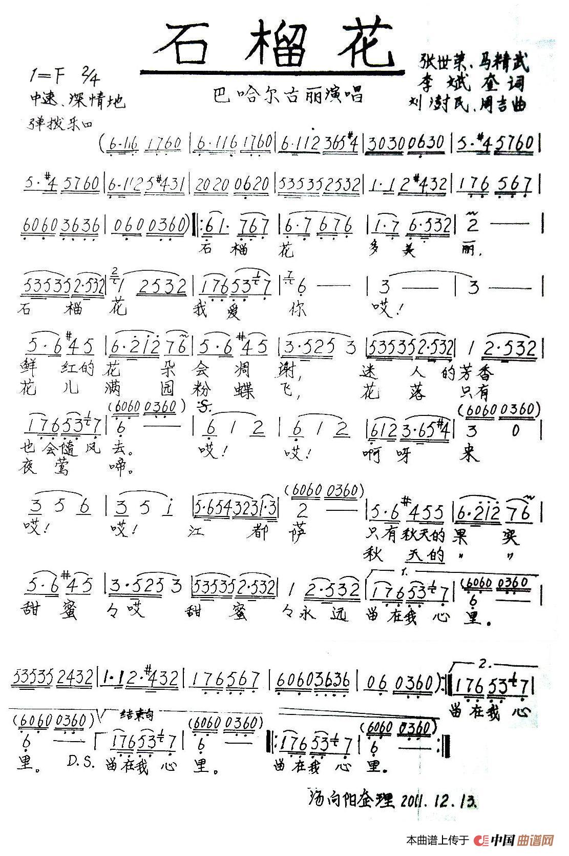 石榴花(张世荣.马精武.李斌奎词 刘澍民.周吉曲、手稿版)