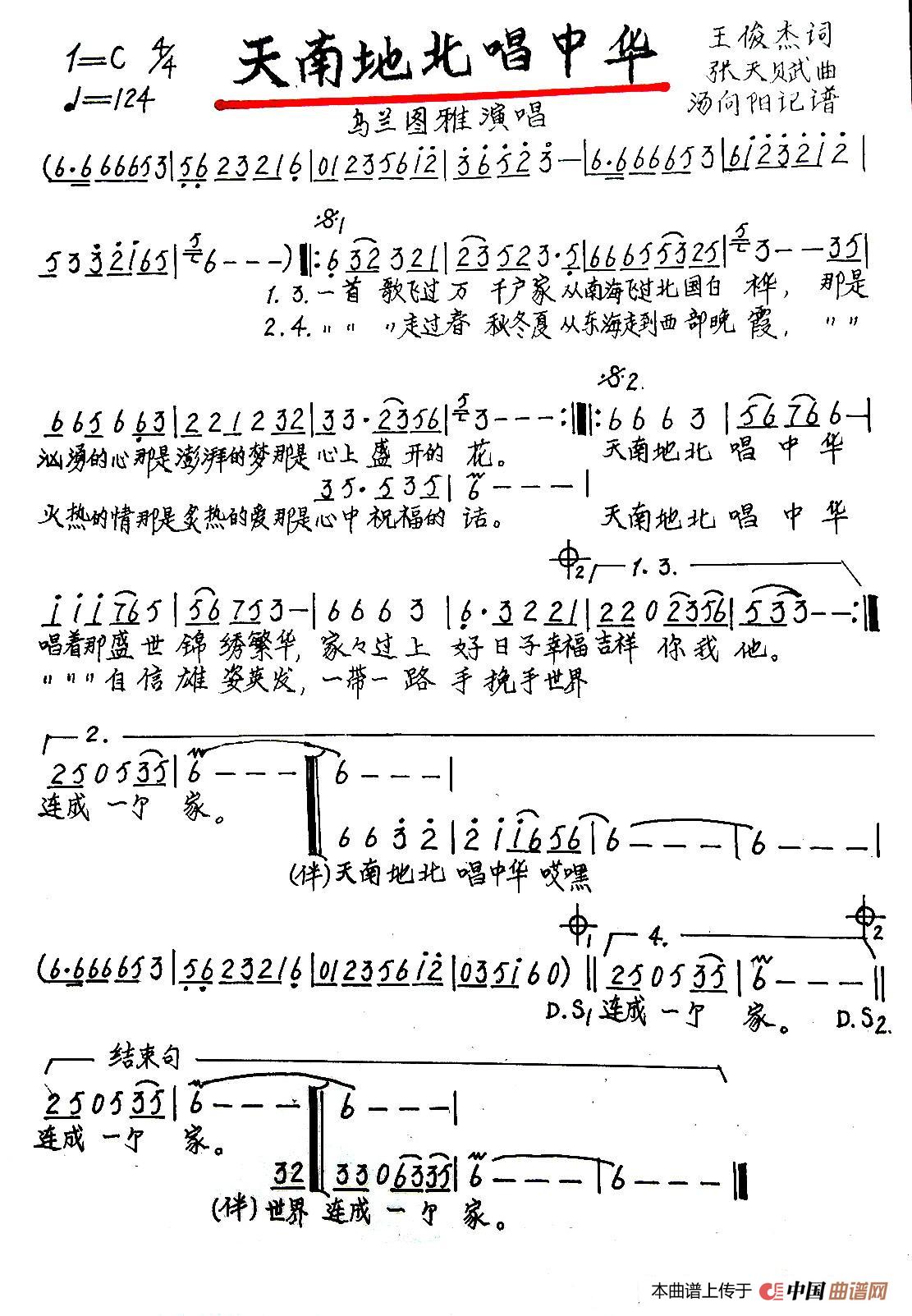 关于《天南地北唱中华》曲谱的评论