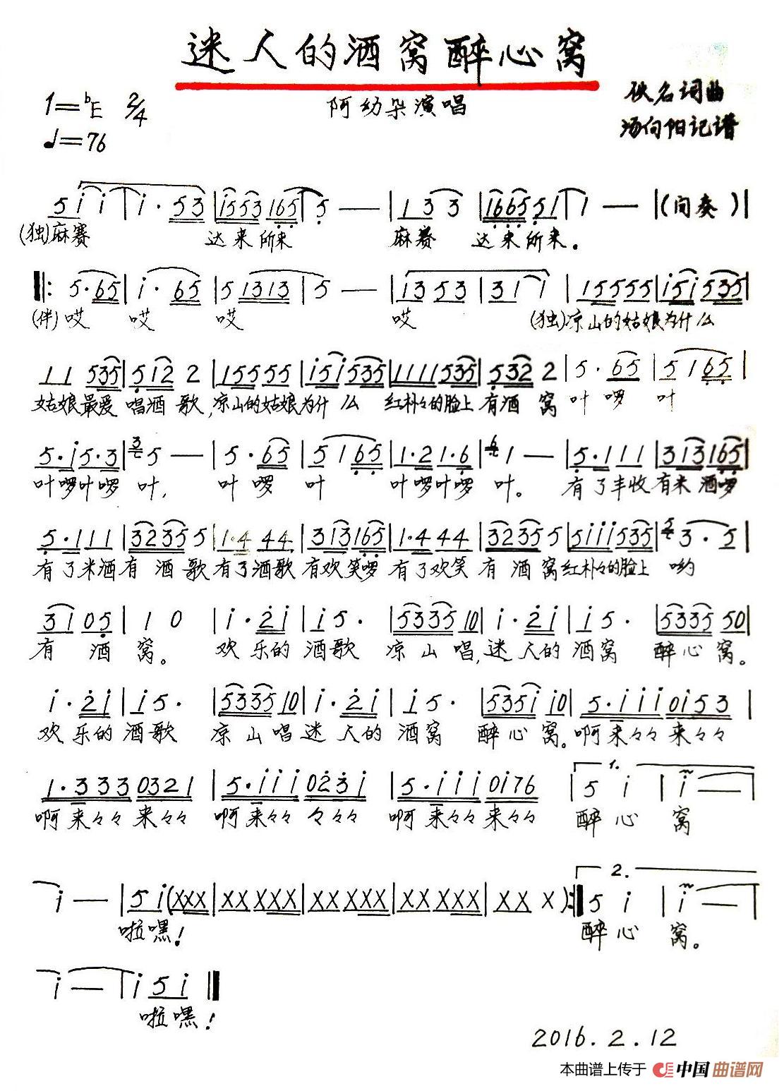 关于《迷人的酒窝醉心窝》曲谱的评论