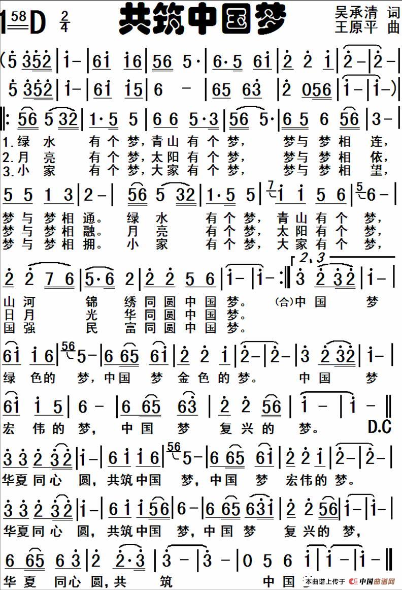 共筑中国梦(吴承清词 王原平曲)(1)_原文件名:共筑中国梦.jpg
