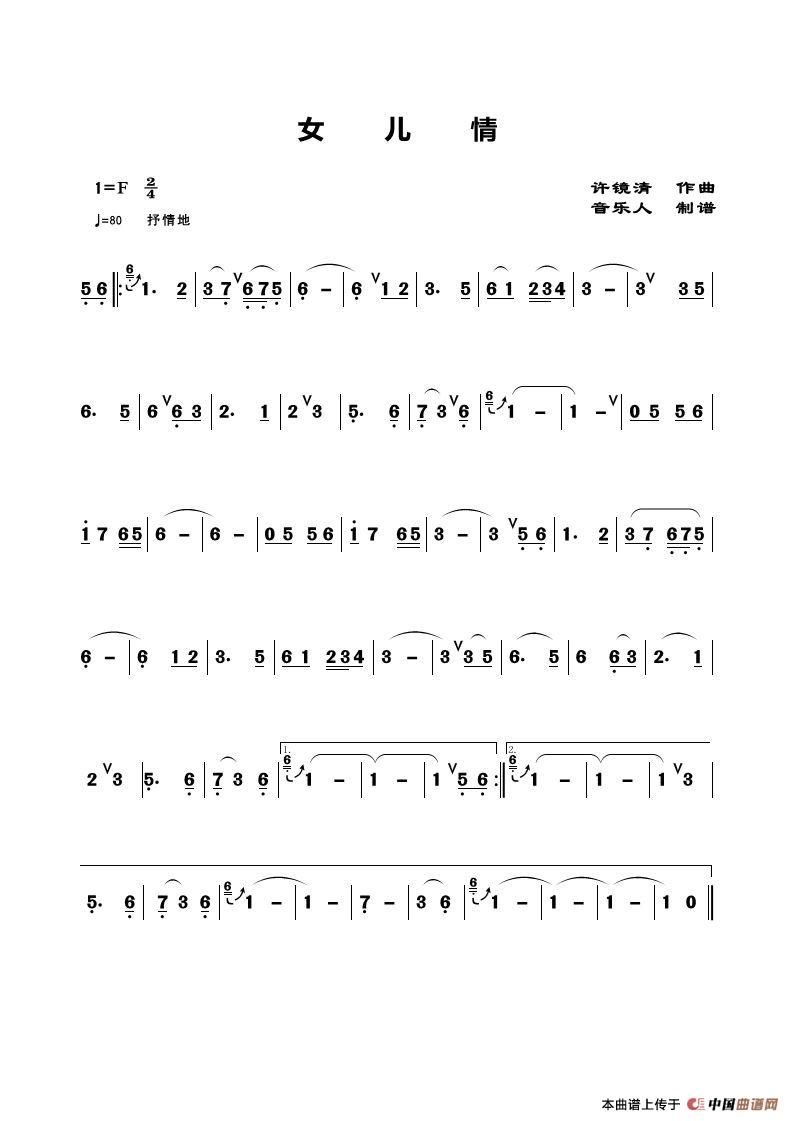 关于《女儿情》曲谱的评论