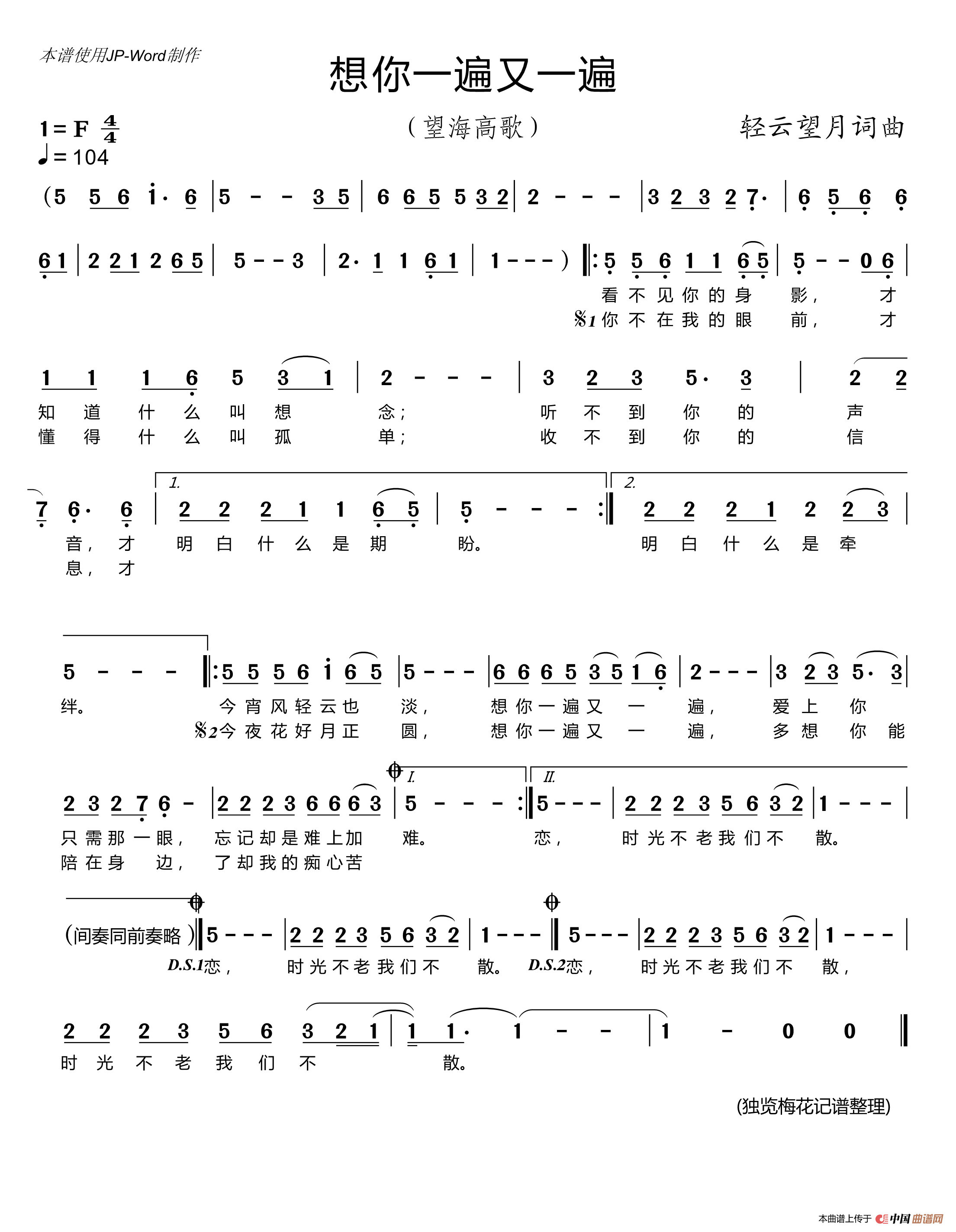 提示:在曲谱图片上单击右键,选择“图片另存为...”即可将曲谱保存到您的电脑中,打印时候可将图片插入到WORD中,调整合适大小打印即可。