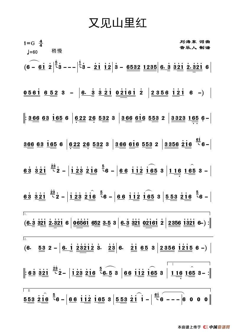关于《又见山里红》曲谱的评论