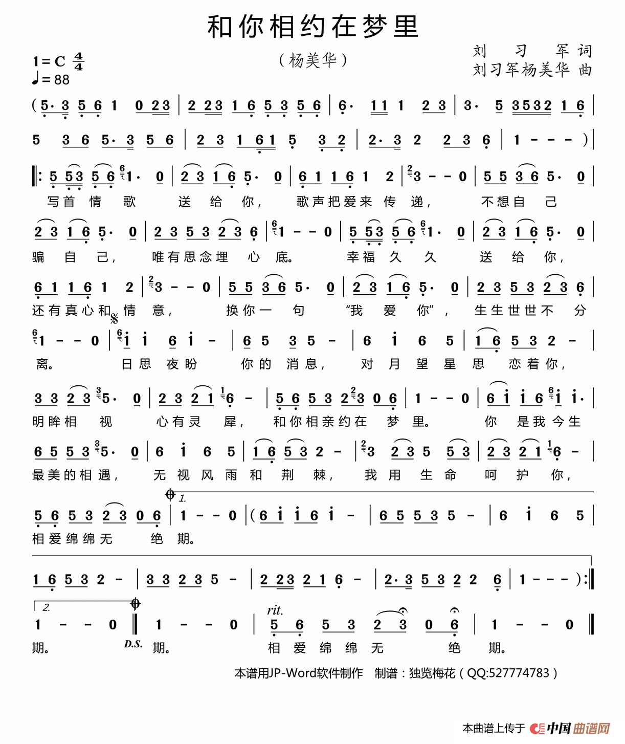 关于《和你相约在梦里》曲谱的评论