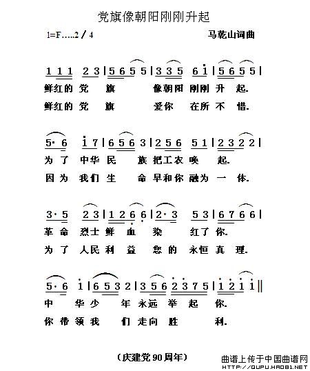 关于《党旗像朝阳刚刚升起》曲谱的评论