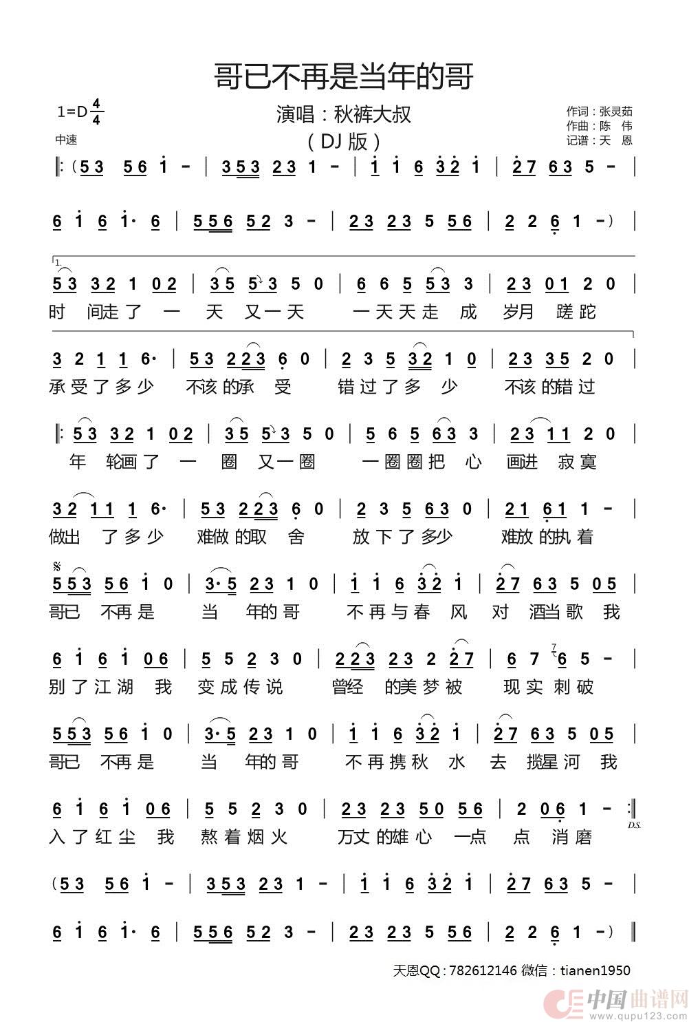 关于《哥已不再是当年的哥 DJ版》曲谱的评论