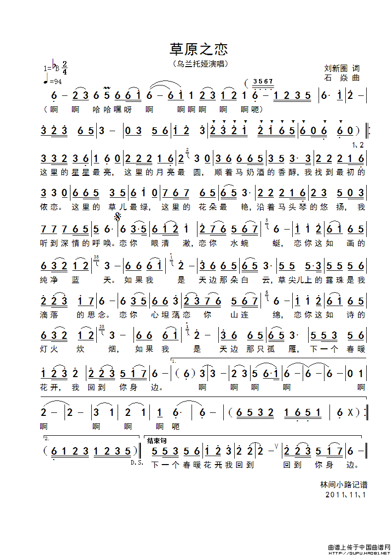 关于《草原之恋》曲谱的评论