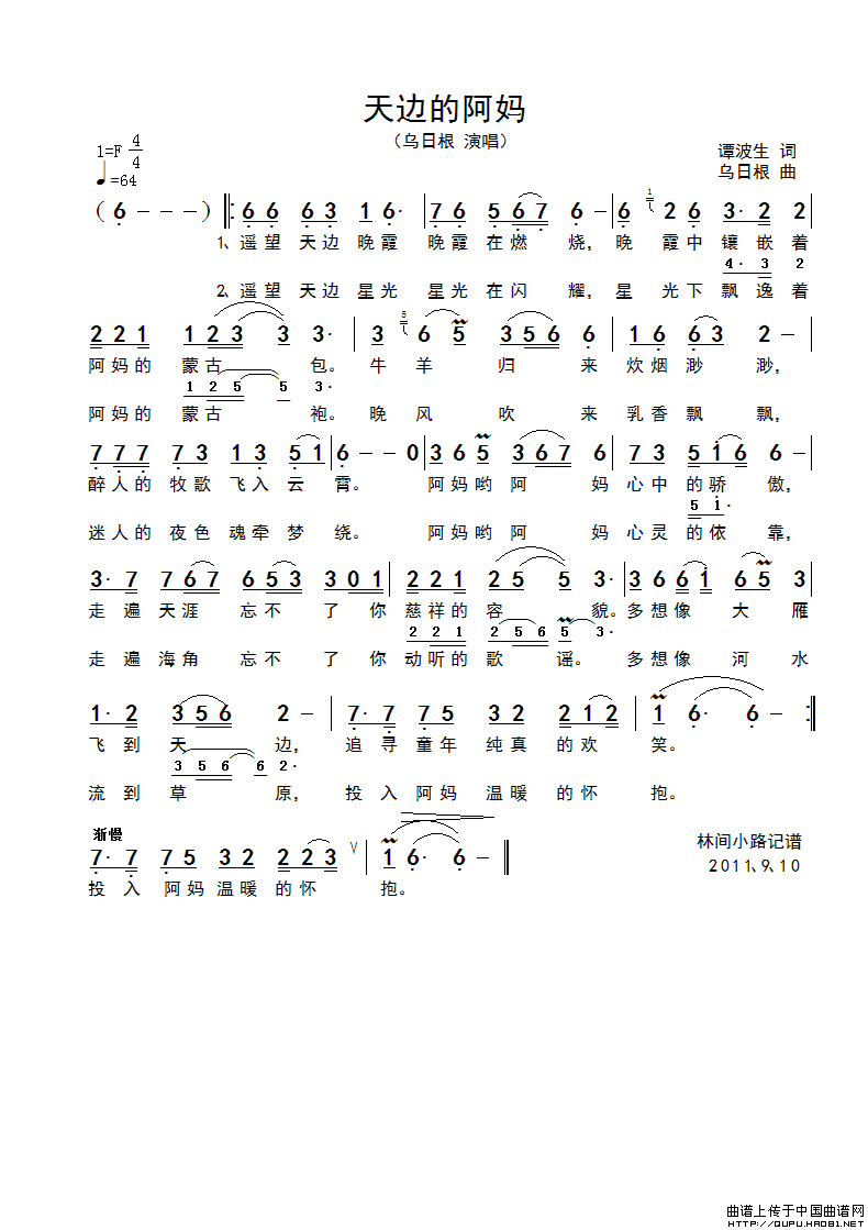 关于《天边的阿妈》曲谱的评论