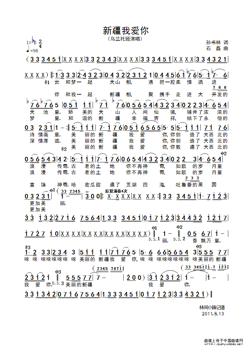 提示:在曲谱图片上单击右键,选择“图片另存为...”即可将曲谱保存到您的电脑中,打印时候可将图片插入到WORD中,调整合适大小打印即可。