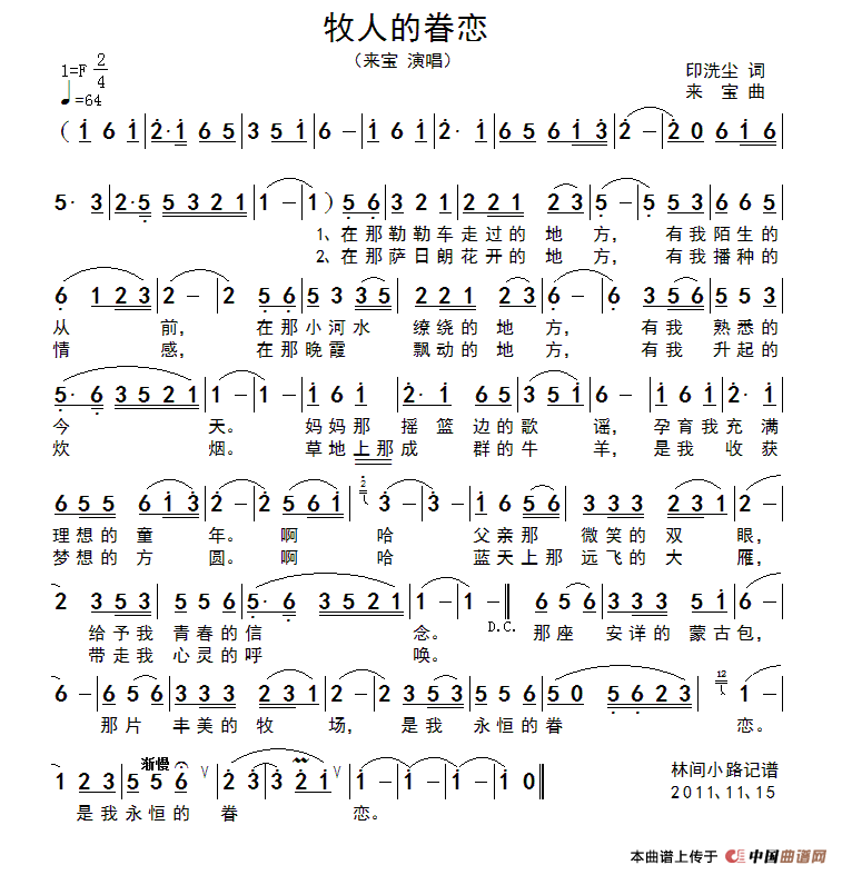 《牧人的眷恋》文本歌词
