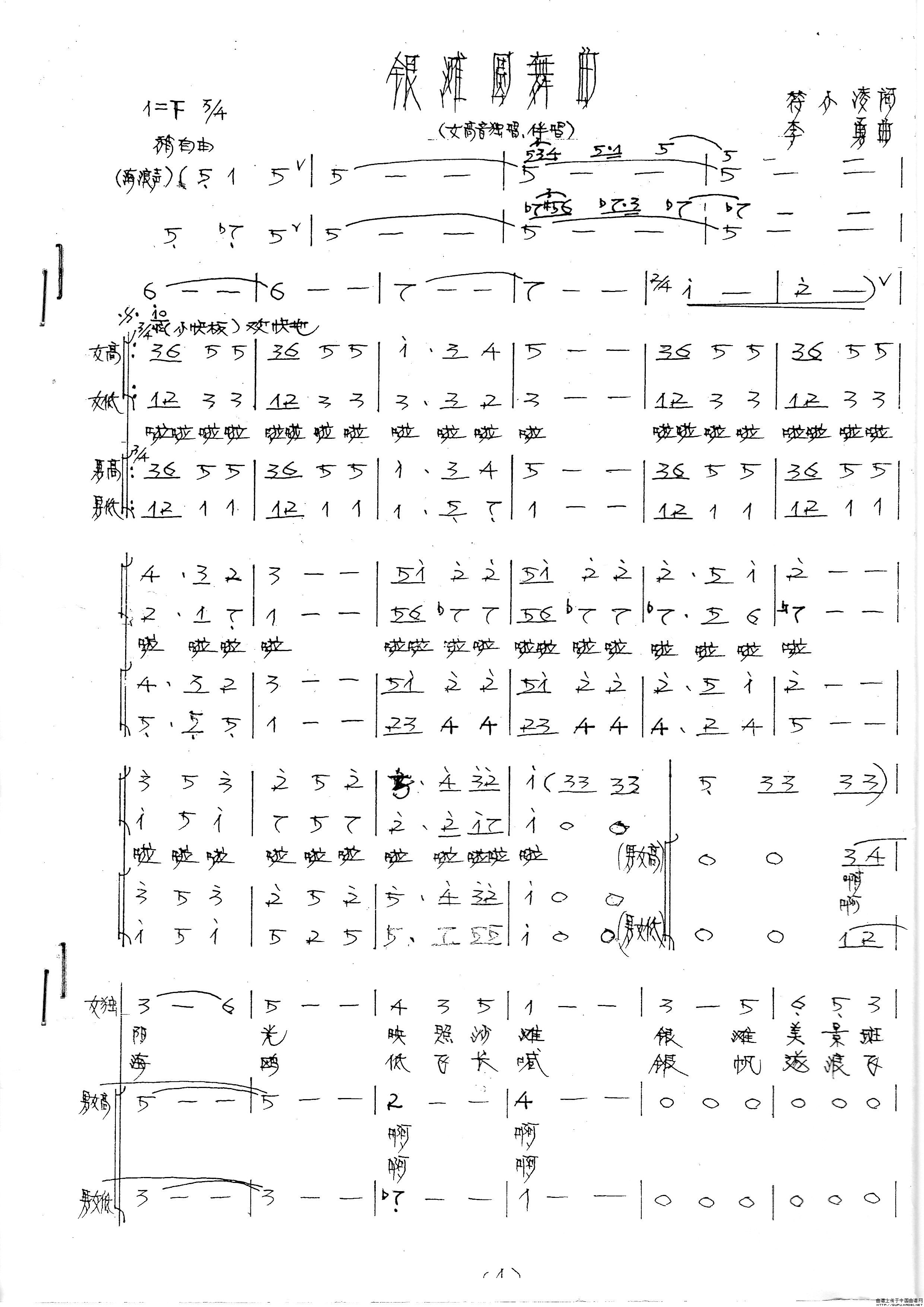 银滩圆舞曲(领唱、混声合唱简谱)