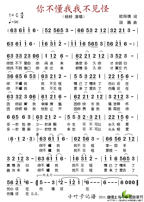 当前位置: 首页 谱友园地 谱友记谱 你不懂我我不见怪