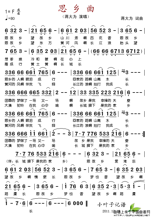 关于《思乡曲》曲谱的评论