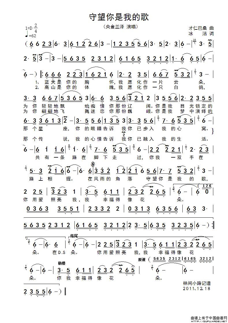 提示:在曲谱图片上单击右键,选择“图片另存为...”即可将曲谱保存到您的电脑中,打印时候可将图片插入到WORD中,调整合适大小打印即可。